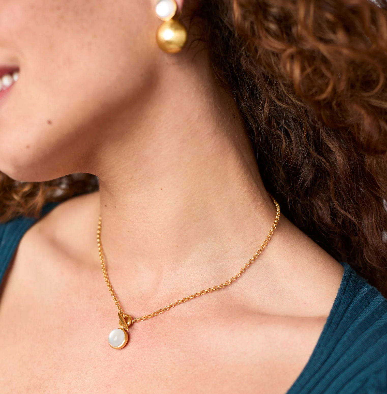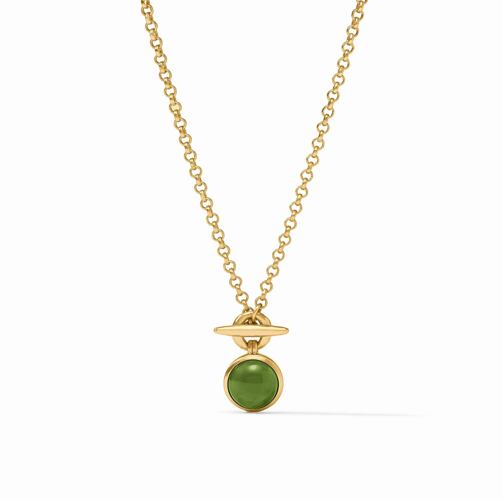 Julie Vos Gold Solara Solitaire Necklace, Iridescent Palmetto Green