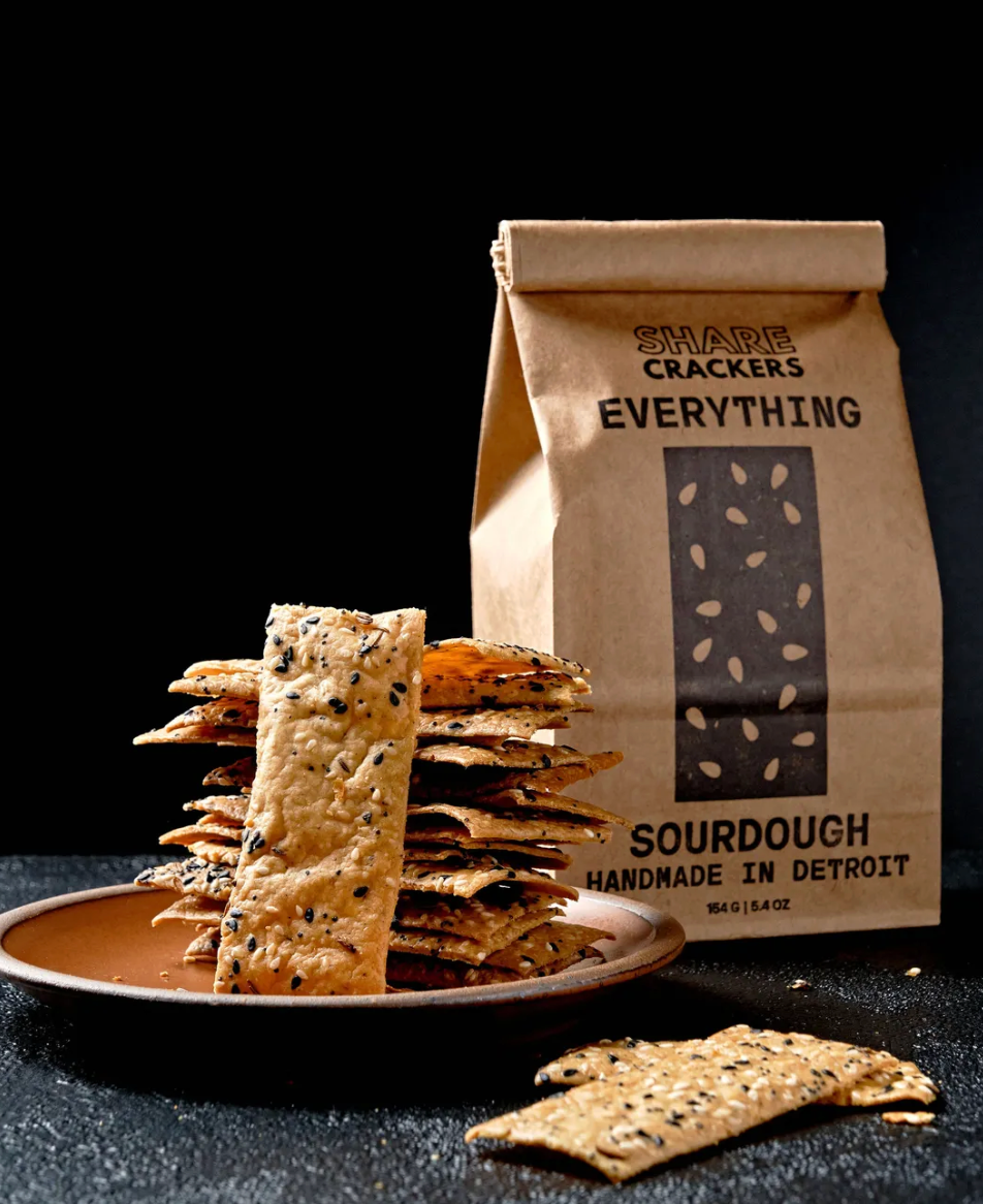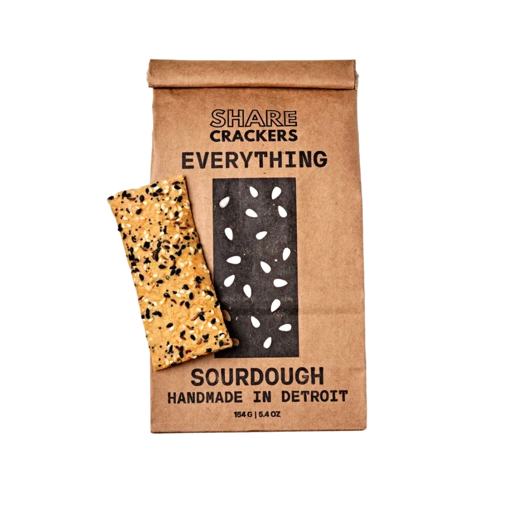 Share Crackers are handcrafted in small batches using a short list of thoughtfully sourced, high-quality ingredients. Inspired by the beloved everything bagel, these crispy sourdough crackers deliver bold, savory flavor in every bite.