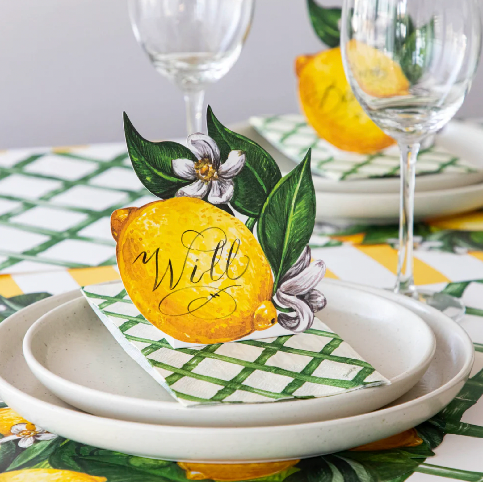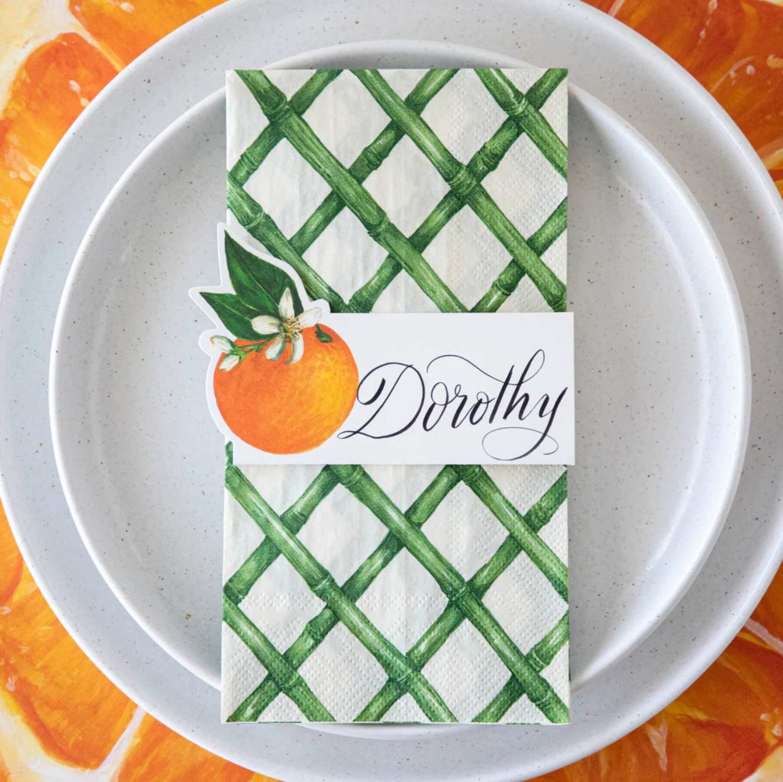 Our classic lattice pattern is now available in a gorgeous green, drawing inspiration from garden trellises and winding country pathways. This essential cocktail napkin is a sophisticated finishing touch to any gathering.