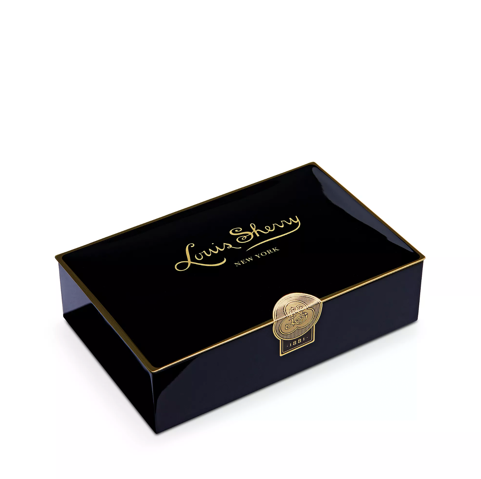 In 1881, Louis Sherry introduced the French chocolate-making tradition to New York and quickly established a reputation for excellence. Sherry's dedication to quality is present today in every truffle. Only the highest quality ingredients, ethically sourced from Ecuador to Madagascar to the Caribbean coast of Venezuela, are used by their master chocolatier. Louis Sherry's traditional candy tins are a recast of the original design, more than 100 years old.