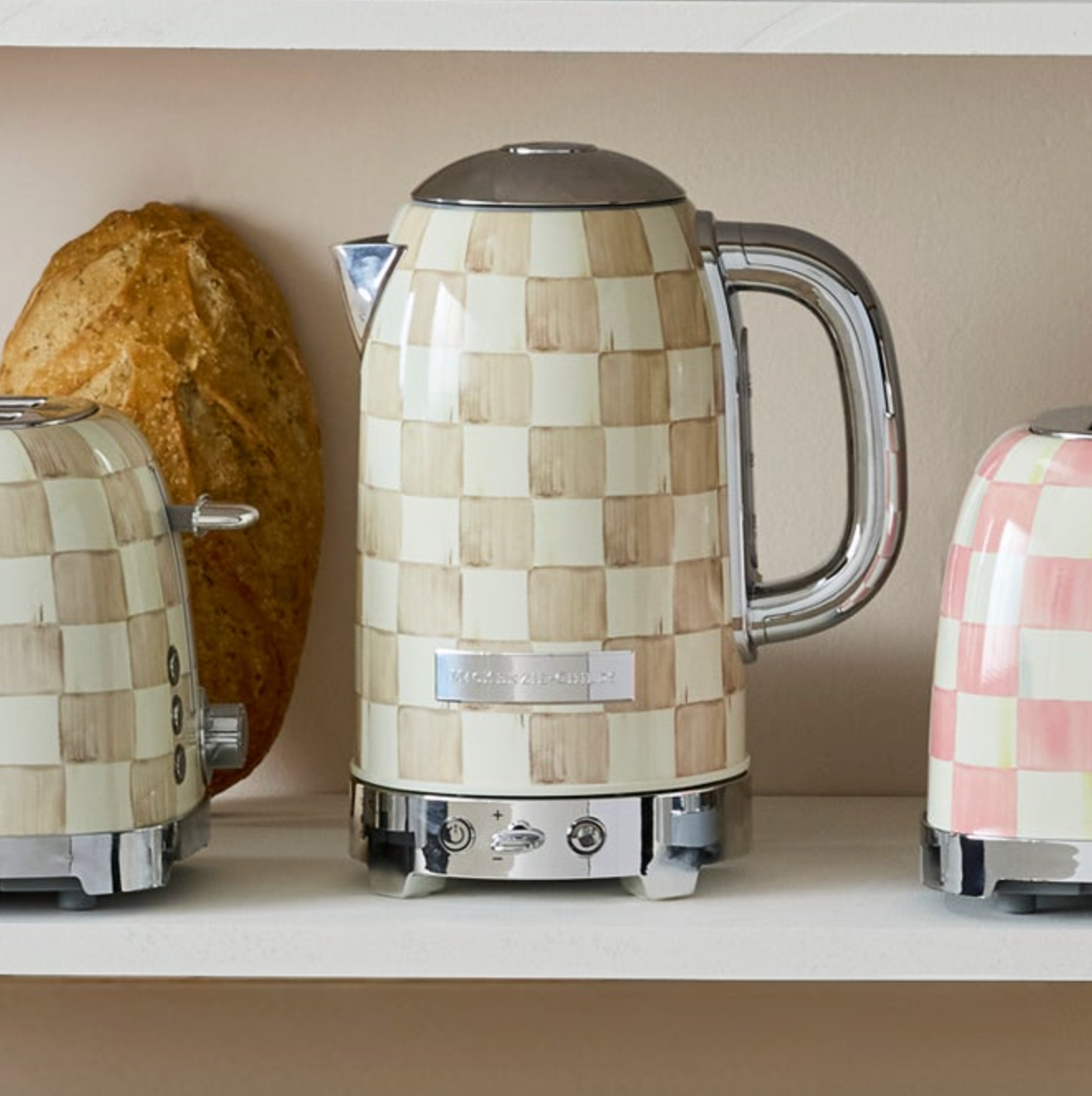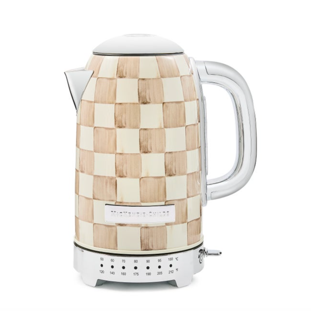 The Mocha Check Electric Kettle has us bubbling over with excitement. Featuring our iconic check pattern on sleek stainless steel, you can turn an everyday essential into a statement piece. Designed for both function and flair, it’s the perfect way to bring color and charm to your kitchen. Pair it with more from the Mocha Check collection for a coordinated look, or mix and match to create a space that sparks joy with every pour.