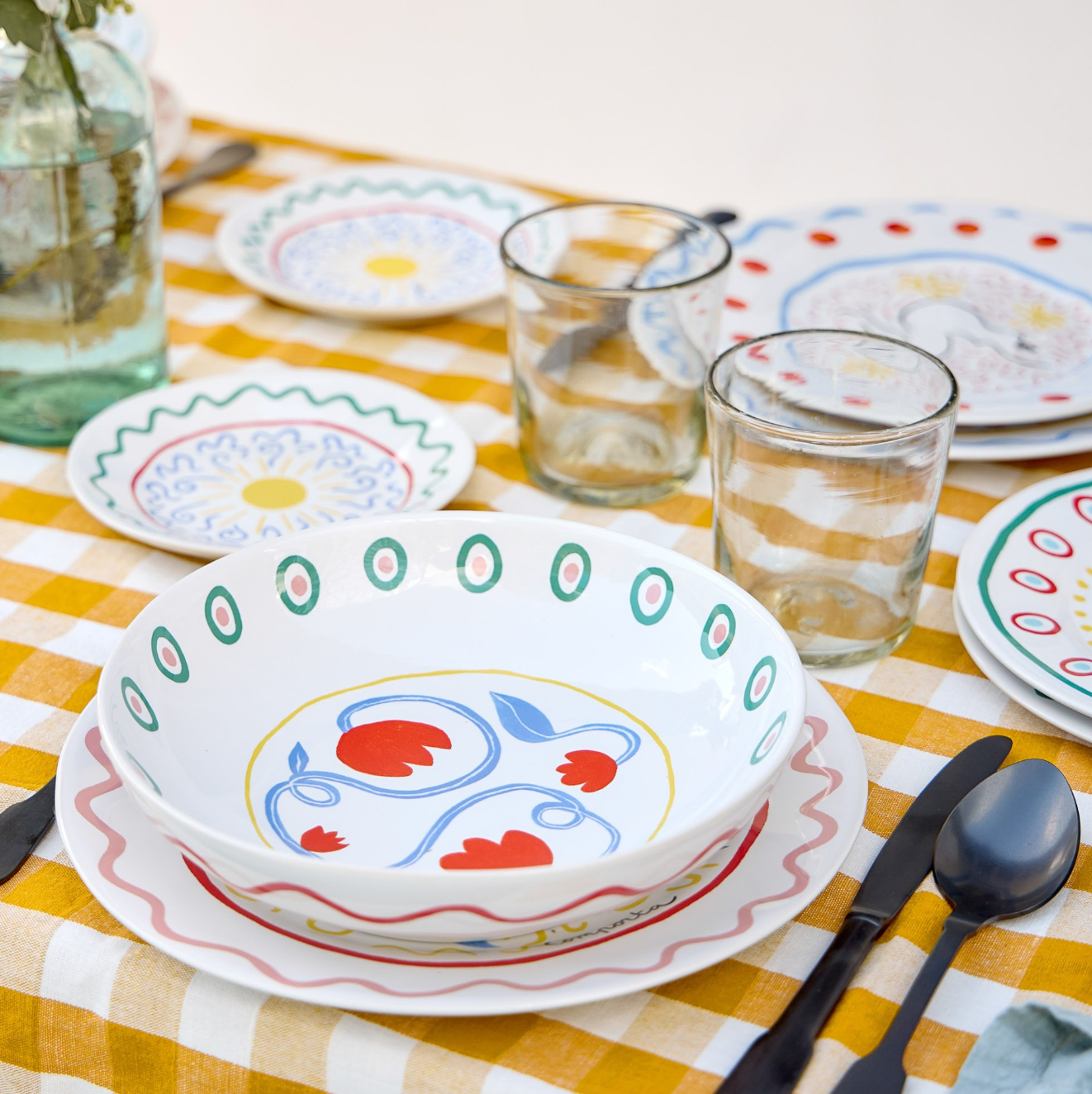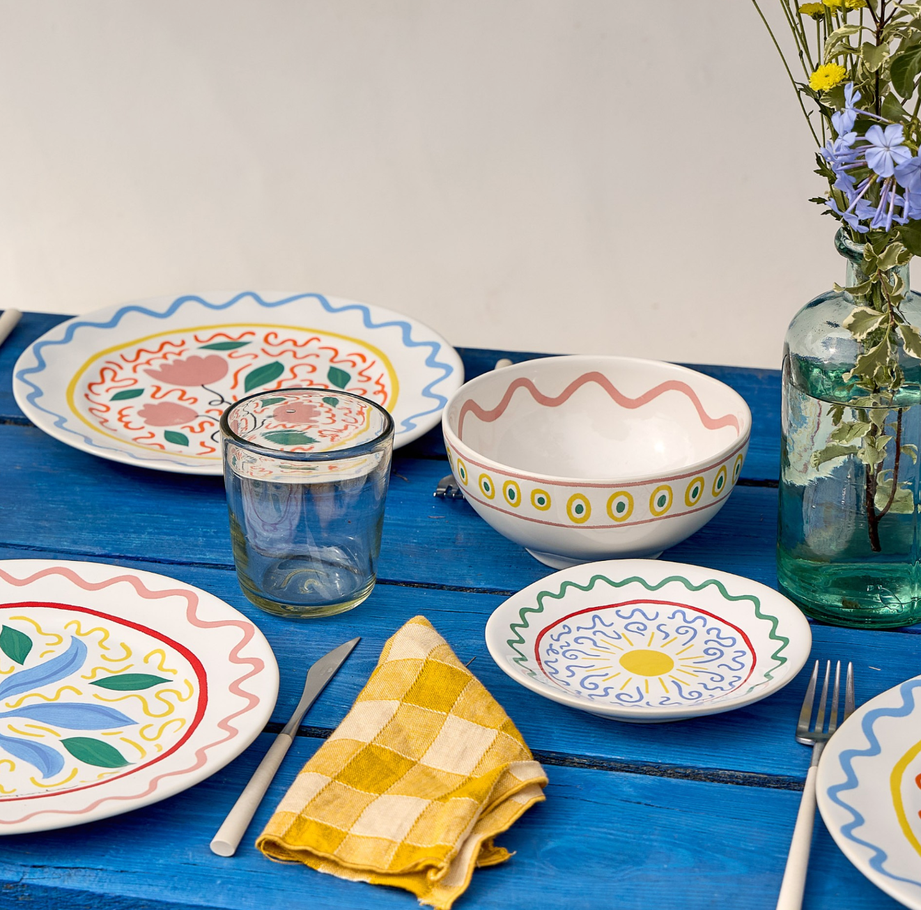 Summer Bliss is a collection from COSTA NOVA with a Mediterranean lifestyle vibe of relaxed elegance and heartfelt connections. Laetitia Rouget has designed this stunning stoneware collection with inspiration from the sun-drenched landscapes of southern Italy, the laid-back charm of Comporta in Portugal, and the timeless elegance of the French Riviera. The vibrant motifs of these pieces mix together beautifully whether at a casual lunch under the sun or a dinner under the stars. Plates and bowls can double as statement pieces or decorative wall art. This is fine stoneware with a glossy glaze.