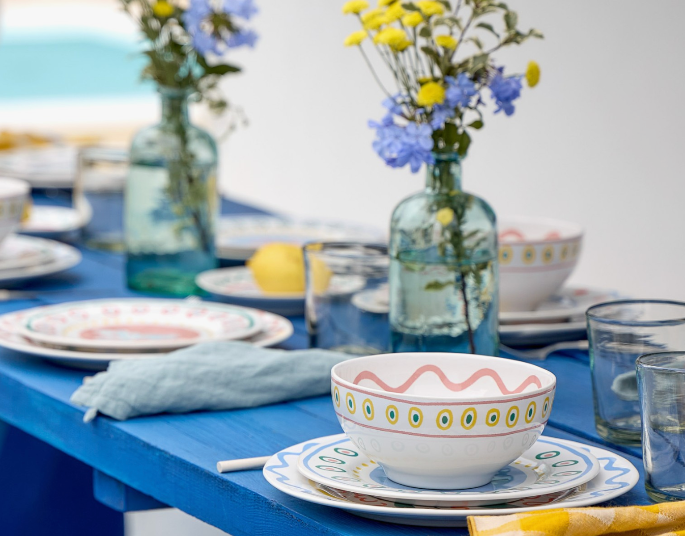 Summer Bliss is a collection from COSTA NOVA with a Mediterranean lifestyle vibe of relaxed elegance and heartfelt connections.  Laetitia Rouget has designed this stunning stoneware collection with inspiration from the sun-drenched landscapes of southern Italy, the laid-back charm of Comporta in Portugal, and the timeless elegance of the French Riviera.  The vibrant motifs of these pieces mix together beautifully whether at a casual lunch under the sun or a dinner under the stars.  Plates and bowls can double as statement pieces or decorative wall art.  This is fine stoneware with a glossy glaze.