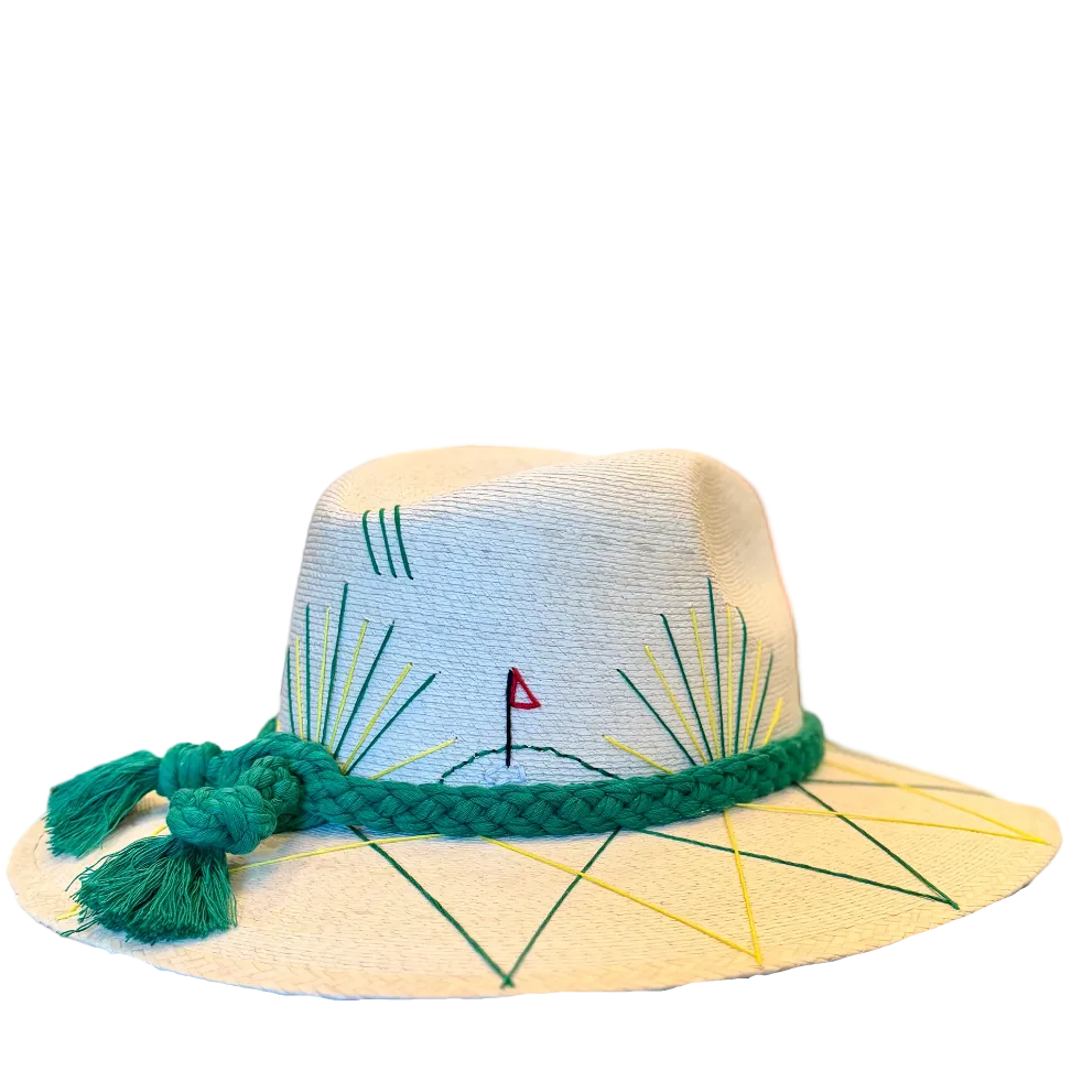 Swing into style with this charming palm hat, where tropical vibes meet the fairway. Hand-embroidered golf details add a playful touch to your warm-weather wardrobe, making it the perfect accessory for golf enthusiasts who don't take themselves too seriously. Whether you're heading to the course or just channeling that resort energy, this hat brings personality and comfort to every adventure.