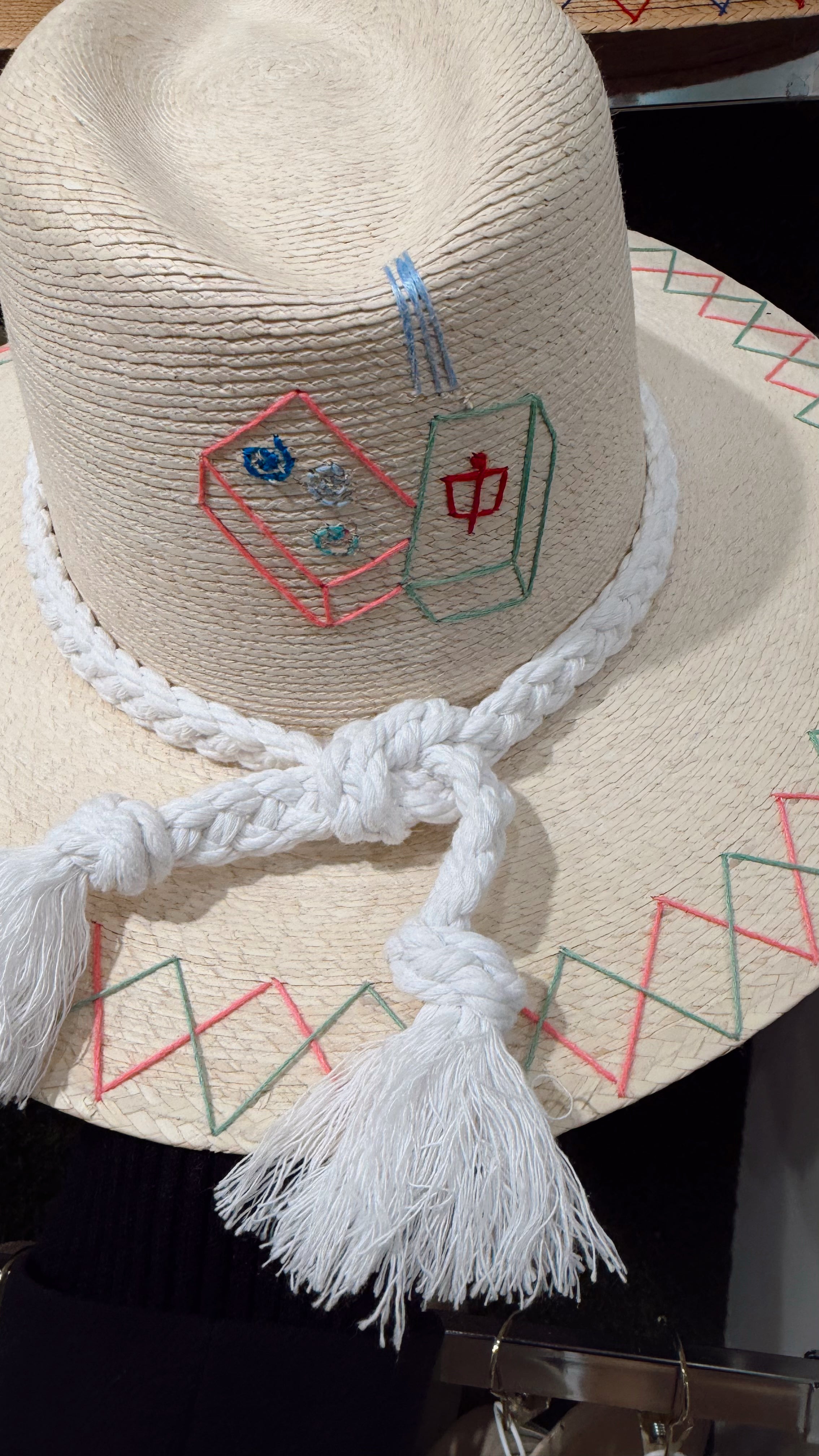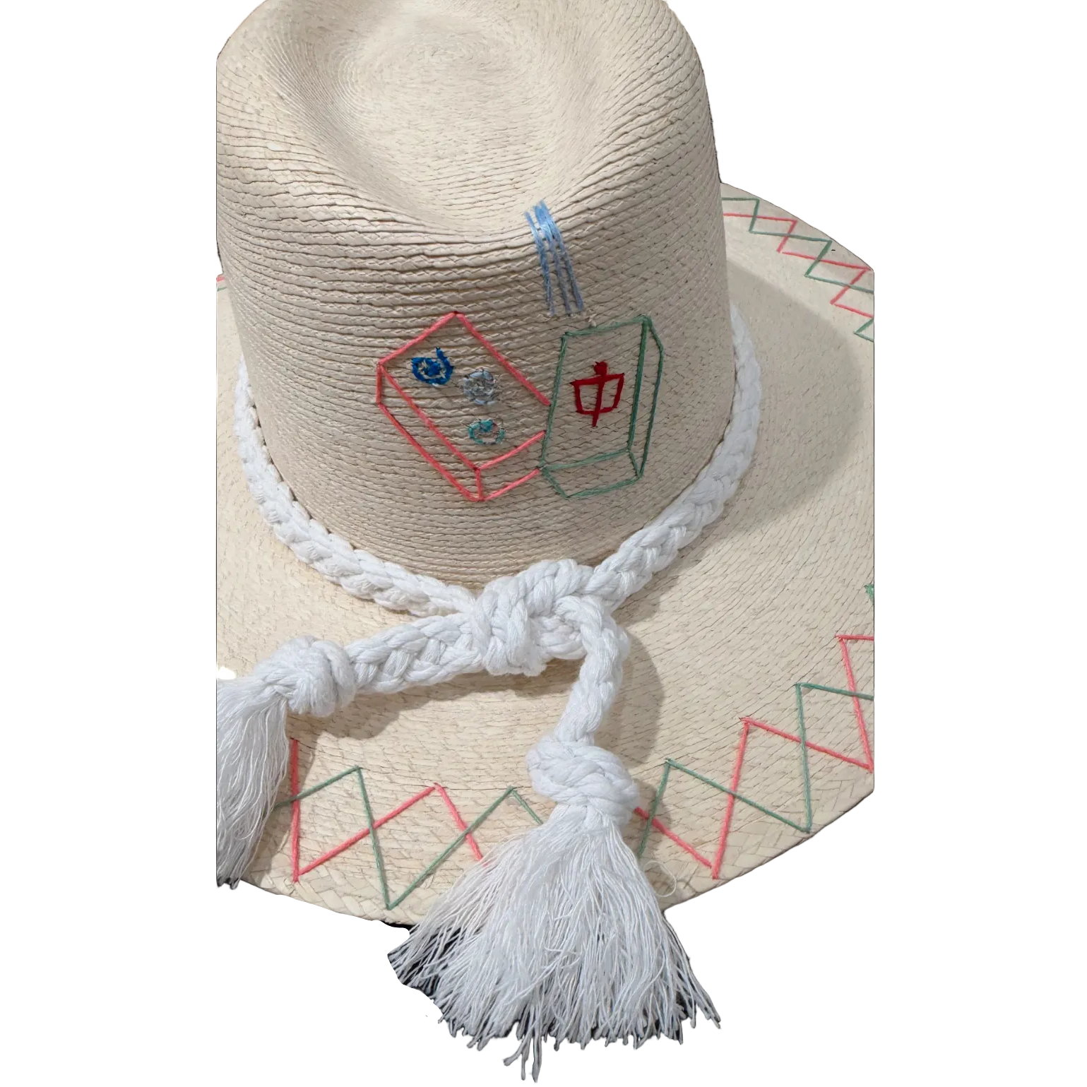 Calling all mahjong enthusiasts! This charming palm hat features hand-embroidered mahjong tiles that celebrate your favorite game in style. Perfect for sunny days at the tiles or showing off your passion poolside, it combines classic resort vibes with a playful nod to mahjong culture. Lightweight and breathable, it's the ultimate accessory for anyone who loves the click-clack of the game as much as a good hat.