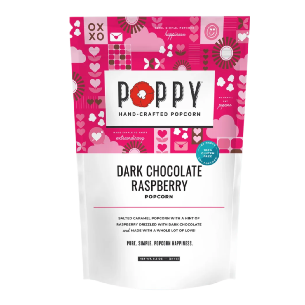 Ingredients: Brown Sugar, Non-GMO Popcorn, Non-GMO Corn Syrup, Unsalted Butter, Dark Chocolate, Molasses, Natural Raspberry Flavor, Sunflower Oil, Sea Salt, Sunflower Lecithin.