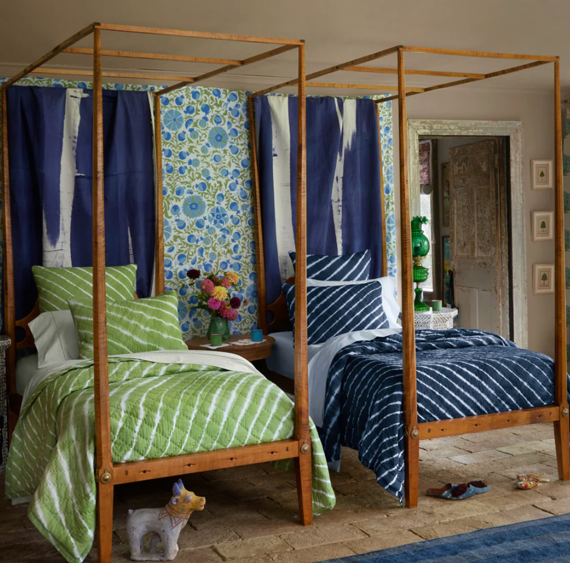 Inspired by the traditional indigo dying traditions of Southern India called 'Leheriya', this quilt is tie dyed by hand on pure cotton voile.