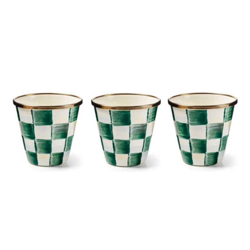 MacKenzie Childs Emerald Check Enamel Herb Pots