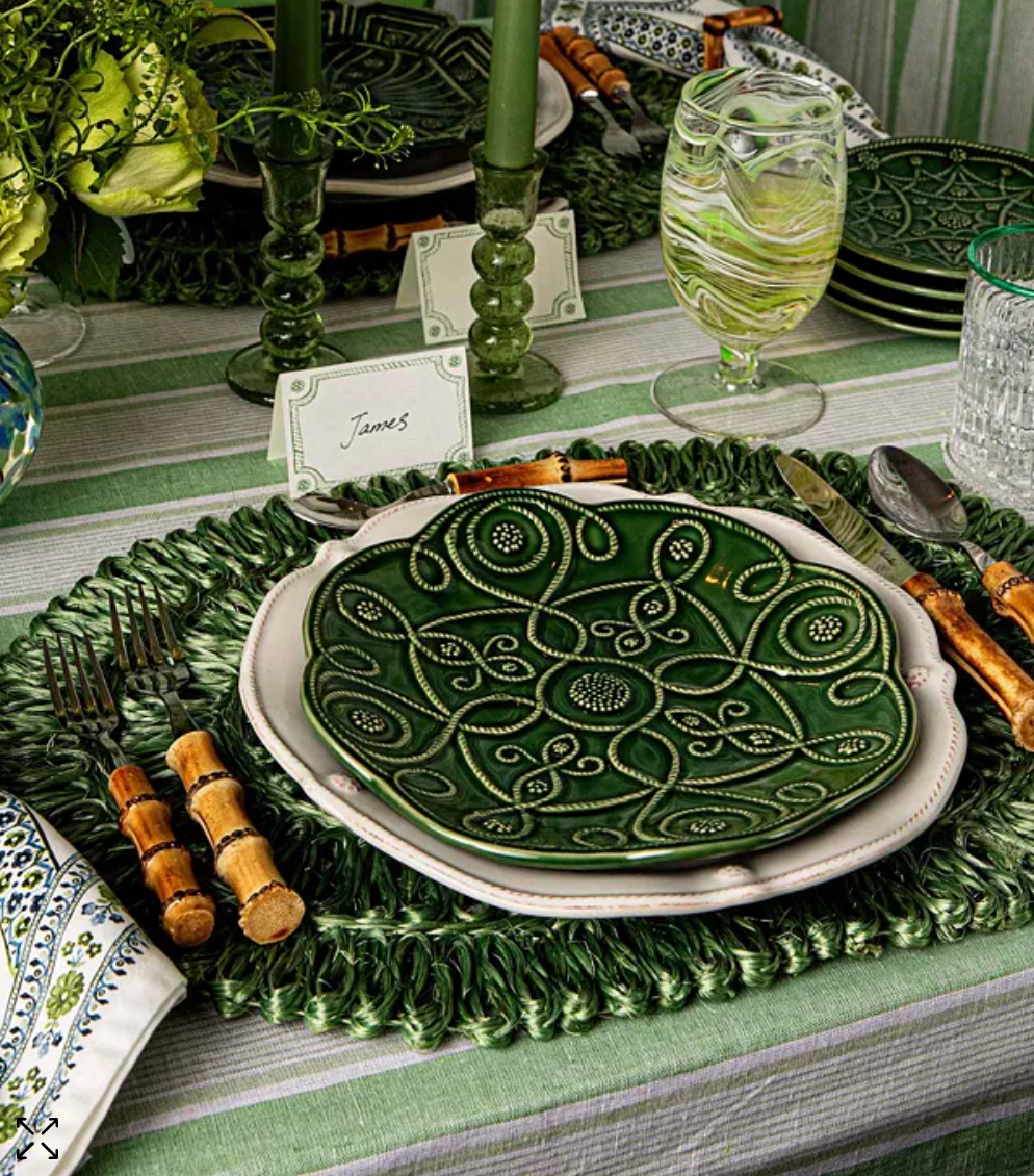 Annie Selke, Dash & Albert, Pine Cone Hill, Julie Vos, Juliska, Oh My Mahjong, VIETRI, Bodrum, Mackenzie Childs, Casafina, Costa Nova, Mottahedeh, Estelle Colored Glass, John Robshaw, Banwood, and Simon Pearce.