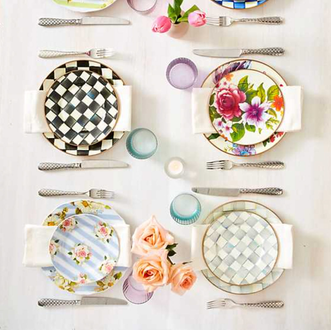 Annie Selke, Dash & Albert, Pine Cone Hill, Julie Vos, Juliska, Oh My Mahjong, VIETRI, Bodrum, Mackenzie Childs, Casafina, Costa Nova, Mottahedeh, Estelle Colored Glass, John Robshaw, Banwood, and Simon Pearce.