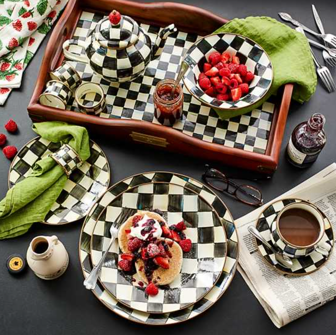 Tapas? Noshes? Tasty treats? This slightly smaller silhouette offers the same warm, inviting high-contrast gloss of our most popular pattern. The comfort food of dinnerware, our most popular pattern is casual and cozy, with a subtle jewel-tone palette woven by an artisan’s brush through the glossy, hand-painted, high-contrast checks.