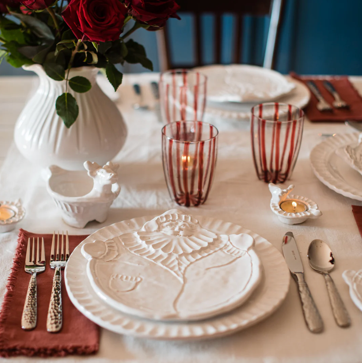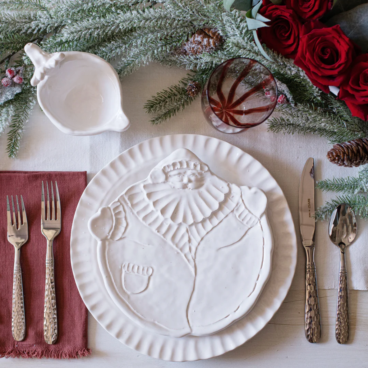 A festive friend to the Pietra Serena collection, Pietra Natale shares Pietra Serena’s handpressed edges, and it adds its own spirit with its jolly, joyful depictions of Babbo Natale, Italy’s Santa Claus. Brimming with charming details like Babbo Natale’s handpressed beard, mittens, and coat pocket for treasures, the Pietra Natale Figural Santa Salad Plate is sure to bring delight to your holiday table for years and years to come.