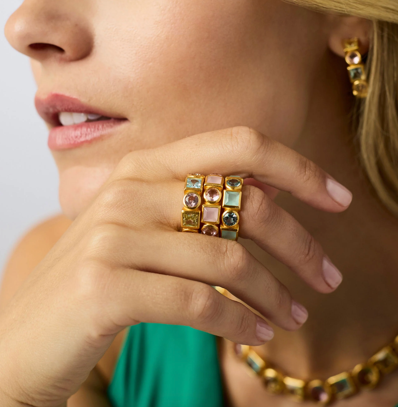 Annie Selke, Dash & Albert, Pine Cone Hill, Julie Vos, Juliska, Oh My Mahjong, VIETRI, Bodrum, Mackenzie Childs, Casafina, Costa Nova, Mottahedeh, Estelle Colored Glass, John Robshaw, Banwood, and Simon Pearce.