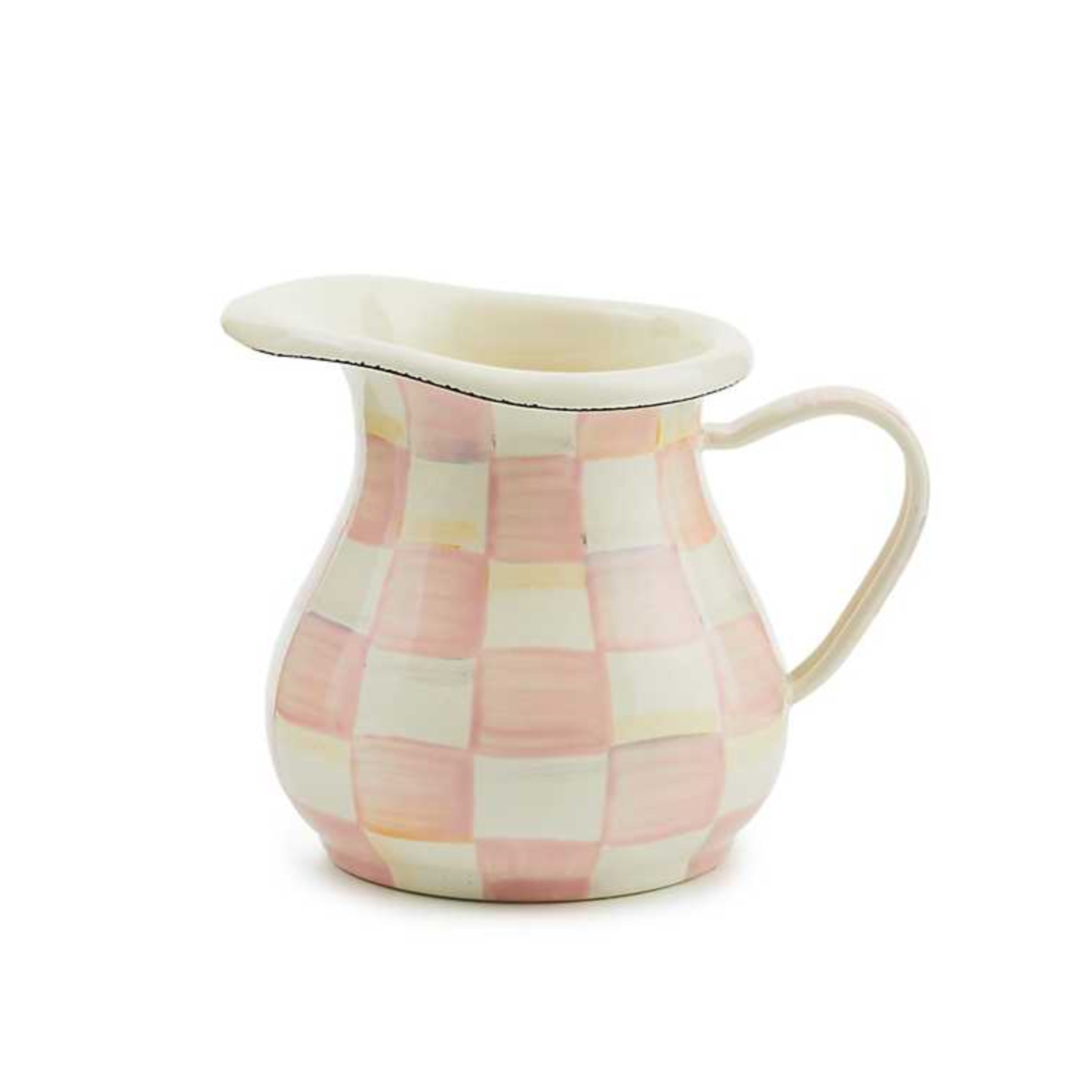 The Rosy Check® Enamel Creamer is the perfect way to energize your morning cup of joe. Take your coffee black? Don’t fret, this versatile vessel invites countless uses-from hot fudge to spaghetti sauce to homemade herb vinaigrette. Pair with a jug of local maple syrup and pancake mix in a welcome gift basket. With a subtle jewel-tone palette woven by an artisan’s brush through the glossy, hand-painted, high-contrast checks, we’ve yet to find a color (or food!) that doesn’t look good with Rosy Check.