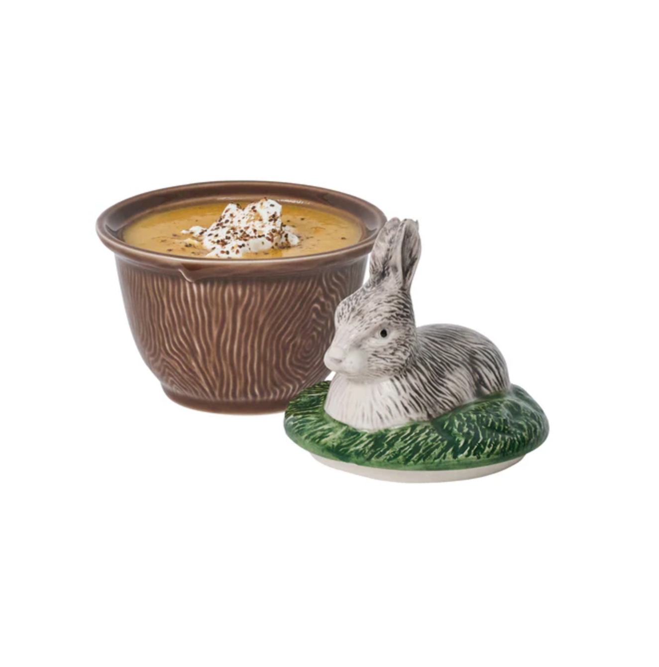 The irresistible fauna and fowl of the autumn woods capture the imagination and add enchantment to your fall tablescapes with beautifully sculpted likenesses hand-painted in Portugal, with intricate detail, atop ceramic bowls featuring a rich woodgrain motif. Rabbit, Pheasant, Deer and Duck are ideal for serving soups, desserts, or condiments—and are always ready to party.