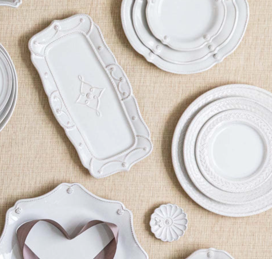 Annie Selke, Dash & Albert, Pine Cone Hill, Julie Vos, Juliska, Oh My Mahjong, VIETRI, Bodrum, Mackenzie Childs, Casafina, Costa Nova, Mottahedeh, Estelle Colored Glass, John Robshaw, Banwood, and Simon Pearce.