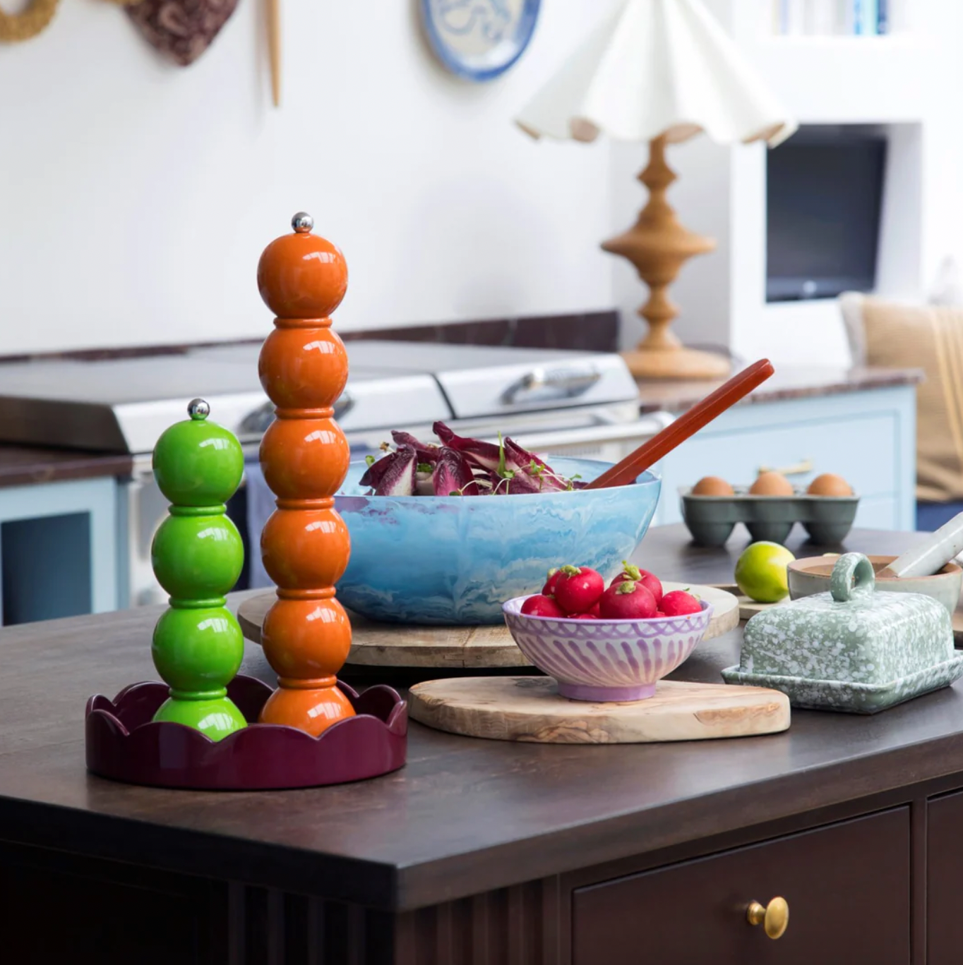 Annie Selke, Dash & Albert, Pine Cone Hill, Julie Vos, Juliska, Oh My Mahjong, VIETRI, Bodrum, Mackenzie Childs, Casafina, Costa Nova, Mottahedeh, Estelle Colored Glass, John Robshaw, Banwood, and Simon Pearce.
