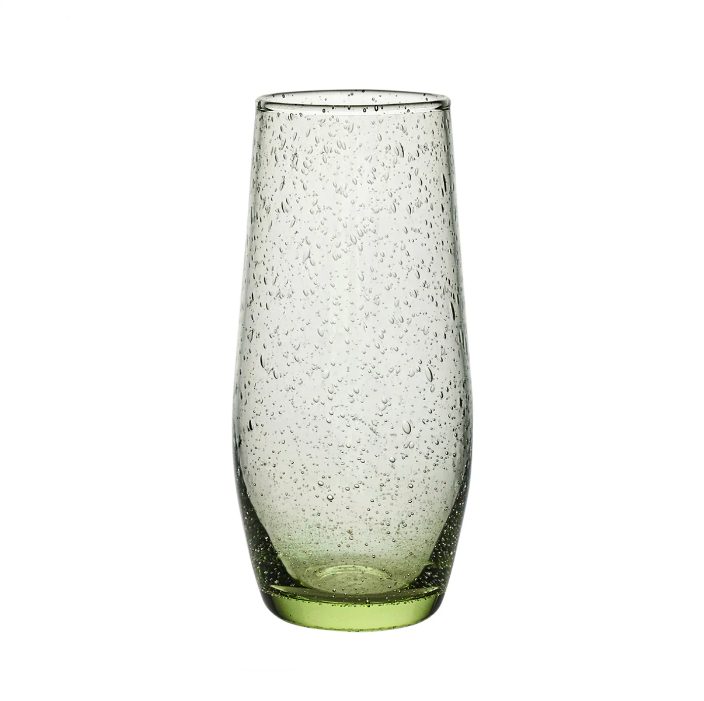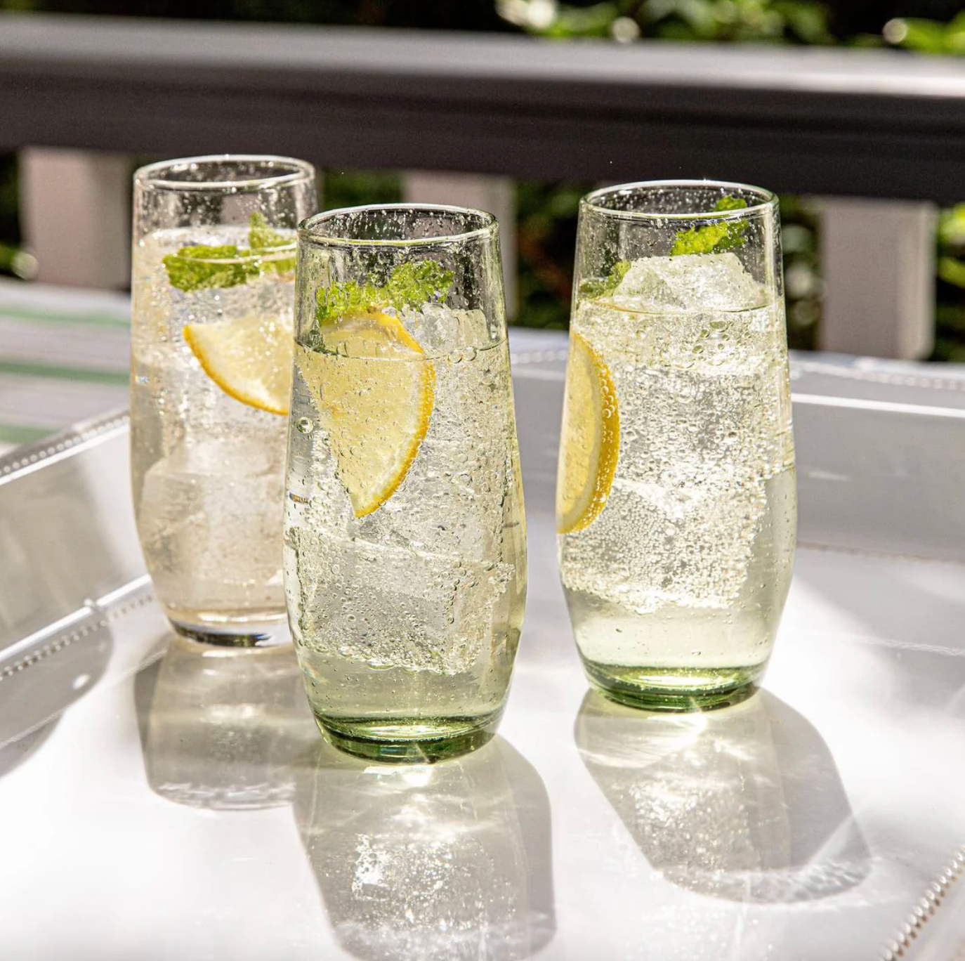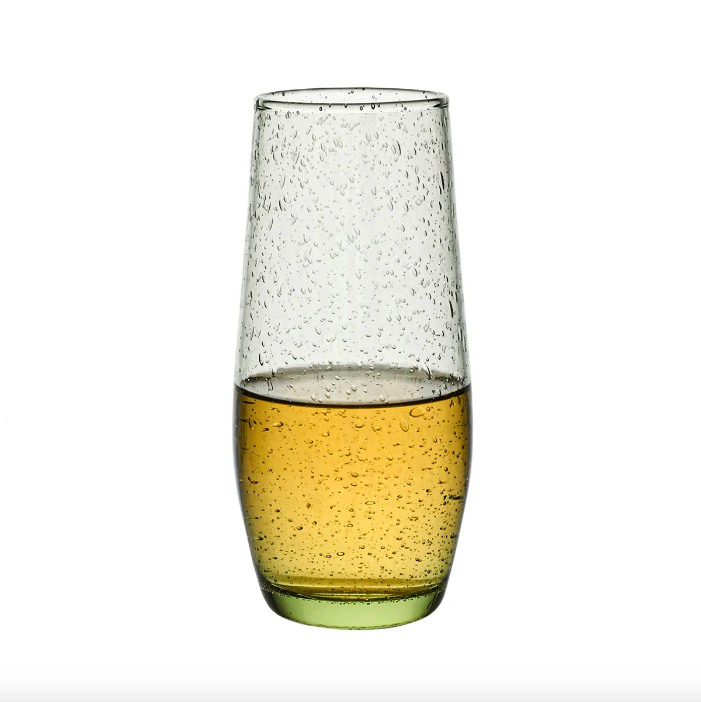 Inspired by the traditional bubbly glassware from Provence while making use of sturdy construction to make everyday drinking effervescent. For wine, water or a seasonal spritz (with or sans alcohol) this mouth-blown, stemless wine glass brings a charming spirit of joie de vivre to every sip. Offered in four chic and versatile hues: Basil, Chambray, Blush, and Clear (we always love to add a pop of color to the table with colorful glass)!