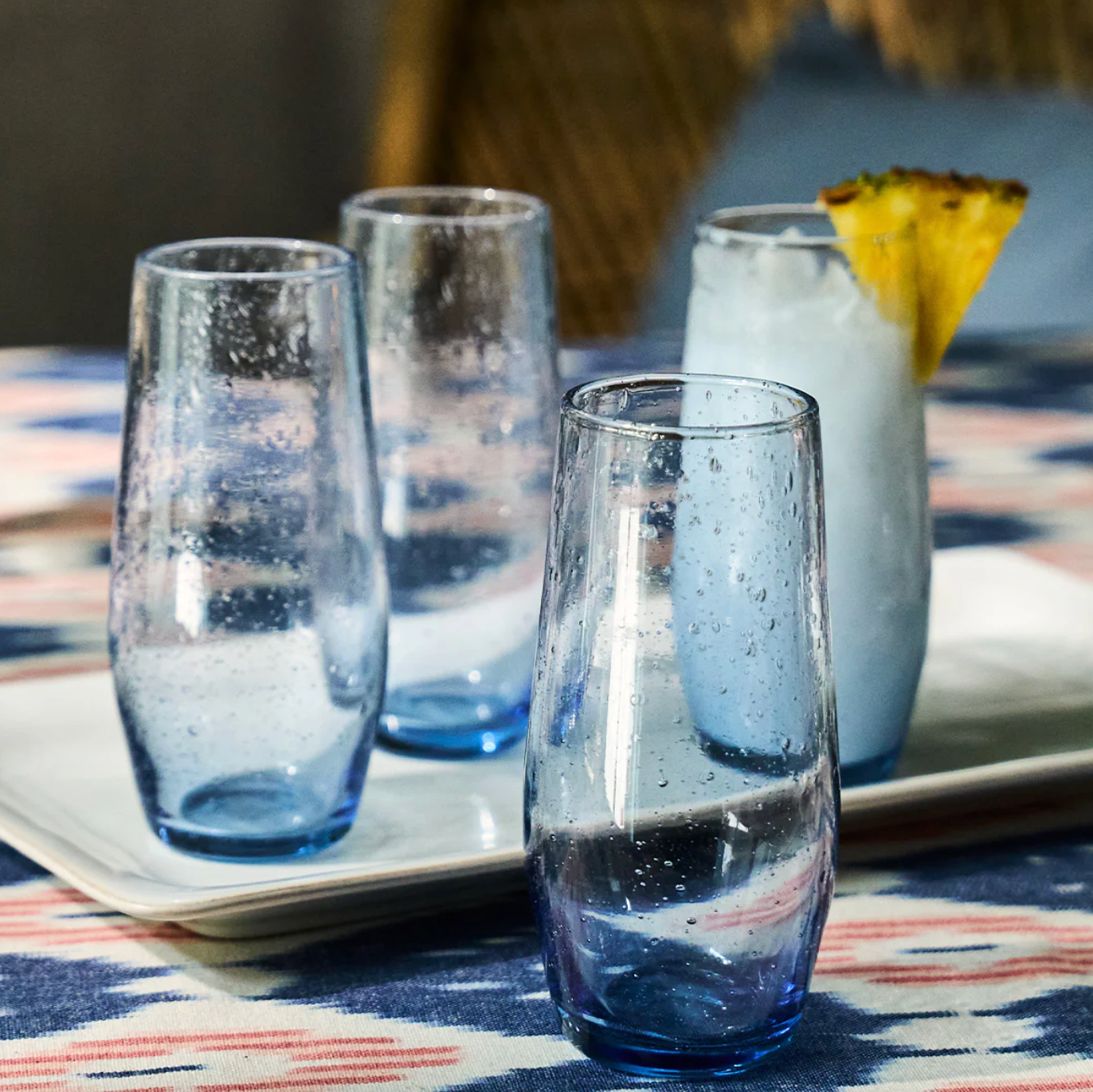 Inspired by the traditional bubbly glassware from Provence while making use of sturdy construction to make everyday drinking effervescent. For wine, water or a seasonal spritz (with or sans alcohol) this mouth-blown, stemless wine glass brings a charming spirit of joie de vivre to every sip. Offered in four chic and versatile hues: Basil, Chambray, Blush, and Clear (we always love to add a pop of color to the table with colorful glass)!