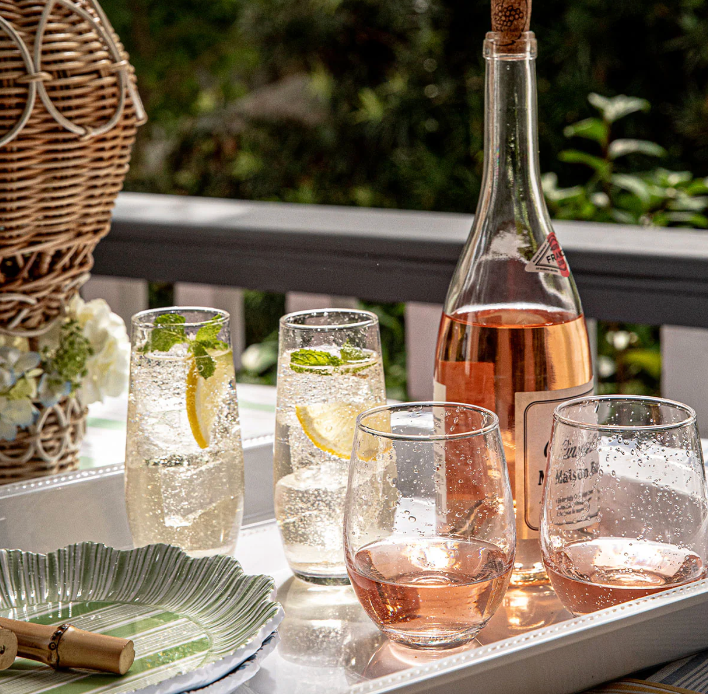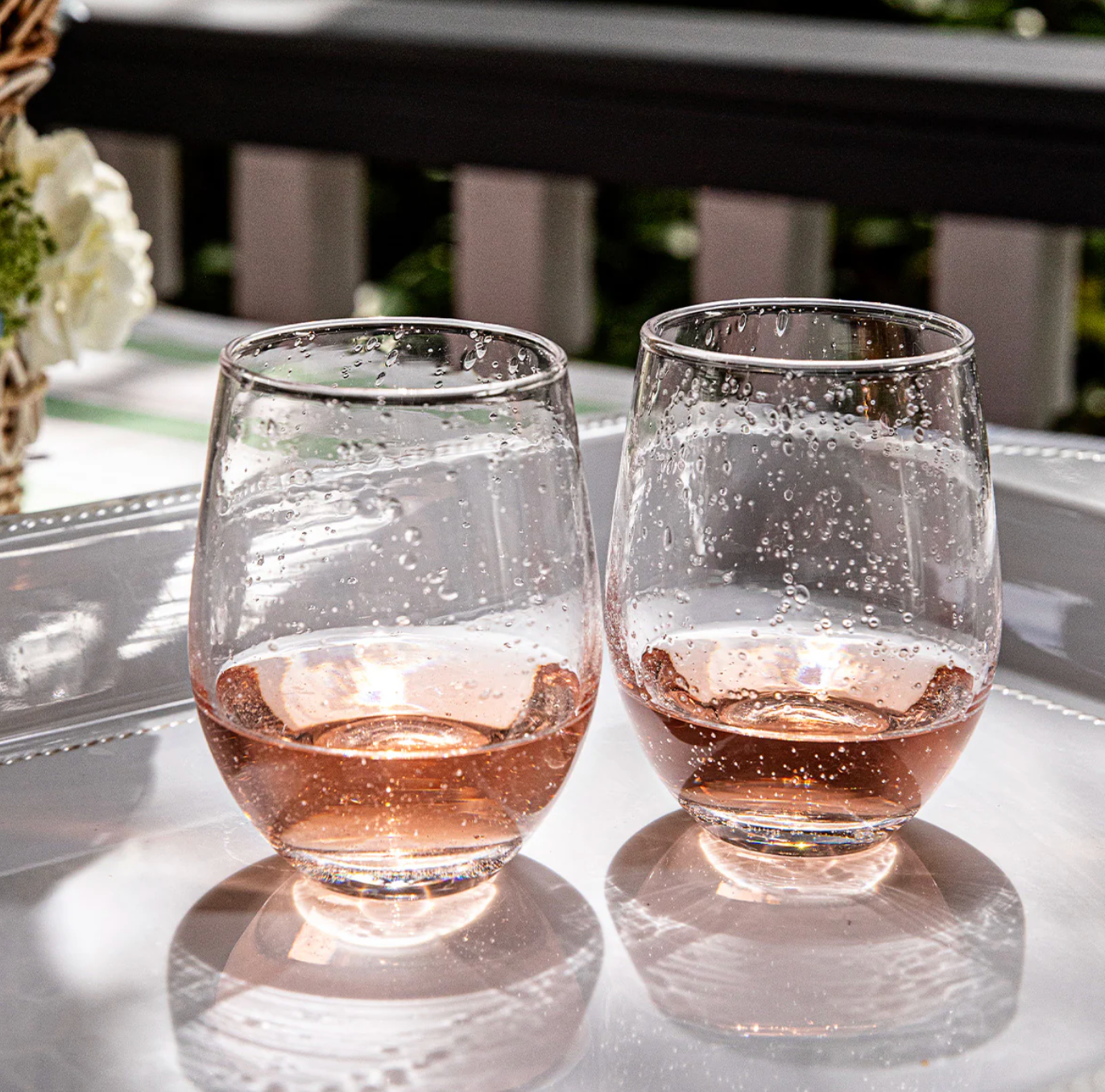 Inspired by the traditional bubbly glassware from Provence while making use of sturdy construction to make everyday drinking effervescent. For wine, water or a seasonal spritz (with or sans alcohol) this mouth-blown, stemless wine glass brings a charming spirit of joie de vivre to every sip. Offered in four chic and versatile hues: Basil, Chambray, Blush, and Clear (we always love to add a pop of color to the table with colorful glass)!