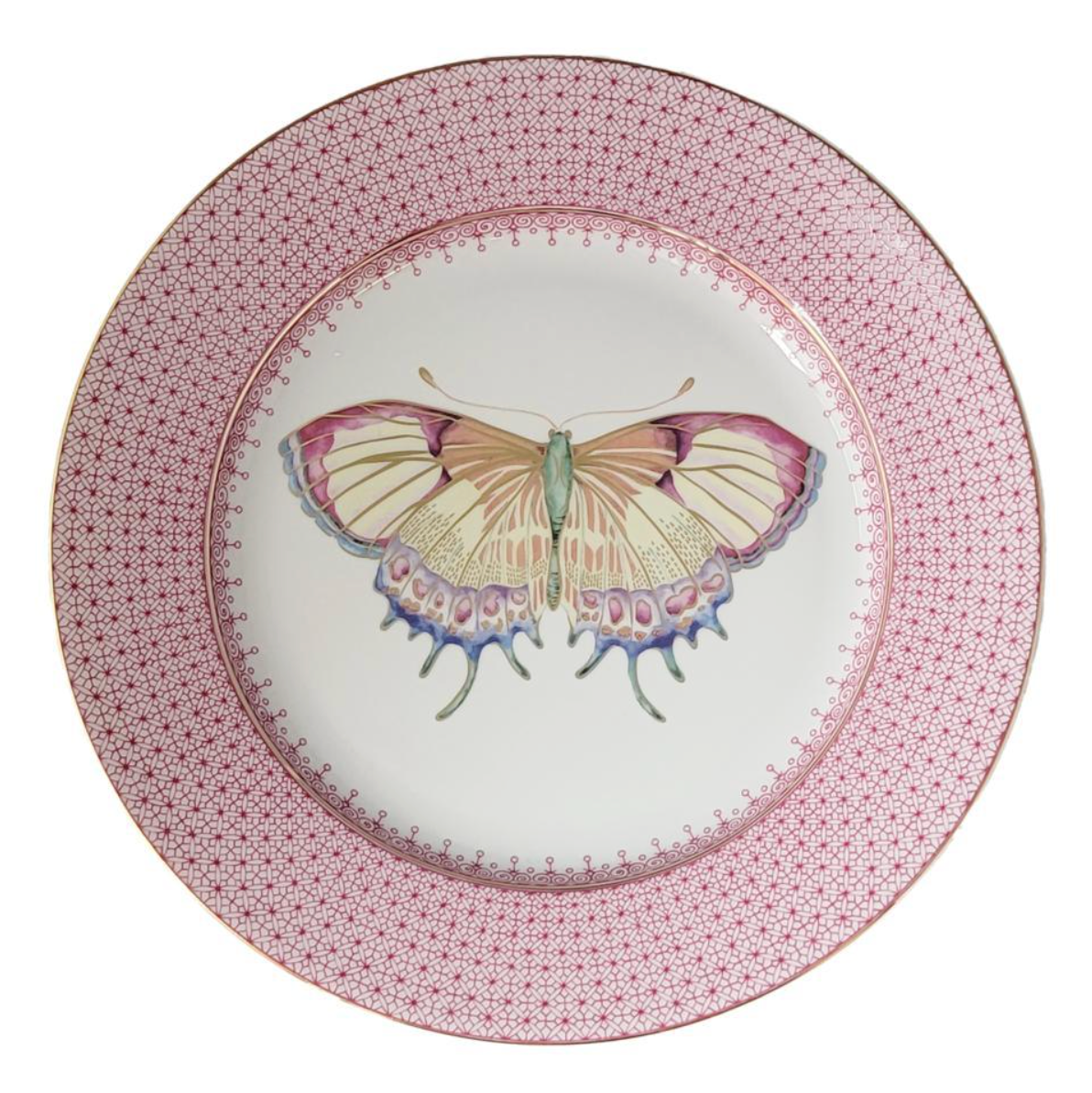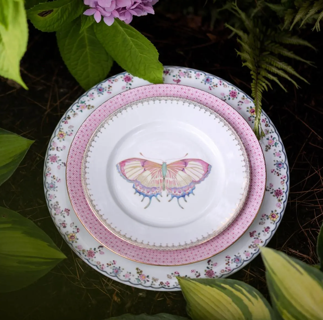 Mottahedeh Pink Lace with Butterfly Dessert Plate