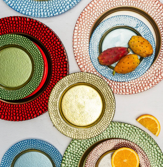 Rich in color and texture, Pelli Glass Salad Plates bring a layer of glamour to your table. Mix and match the different Pelli Glass hues for your own unique, vibrant table.