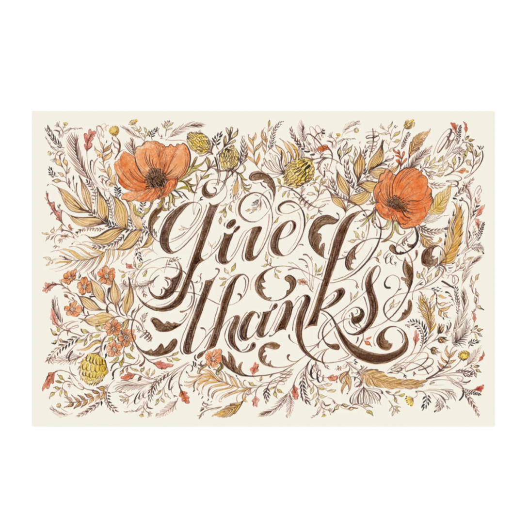 Perfect for keeping the table clean on Thanksgiving, this set of 24 placemats features a simple yet meaningful phrase perfect for the season. Made from paper, these are recyclable and easy to throw away when finished.