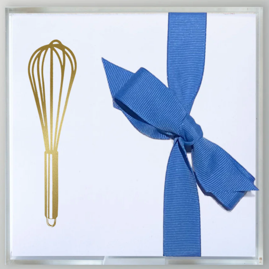 Dress up your desk with our crystal clear, high quality lucite tray and keep things cooking with our fabulous gold foil whisk paddie! Our paddies are 5.5x5.5 and just the perfect thing for small spaces and big ideas!