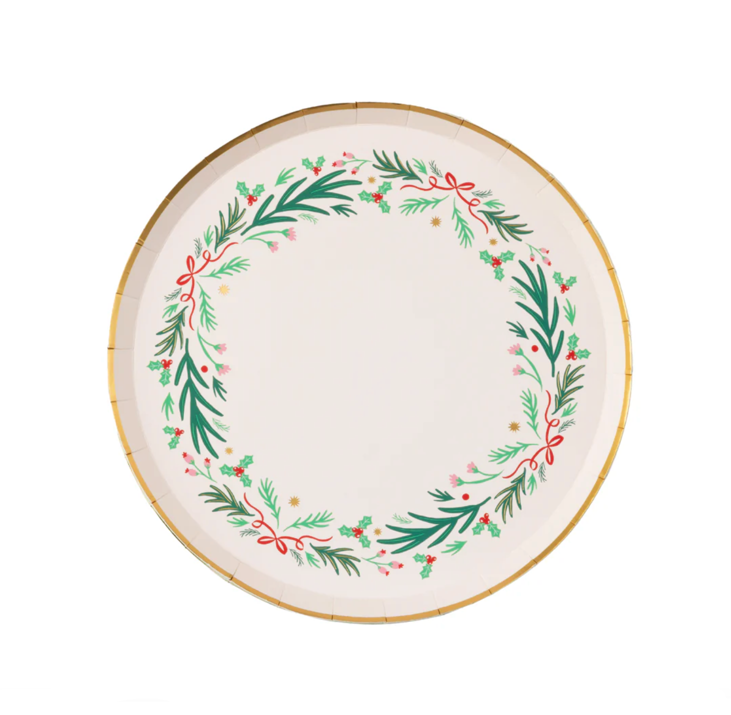 Elevate your Christmas dinner table with our Christmas Wreath Small Plates! These exquisite dessert plates boast a creamy base with a luxurious gold foil rim and are embellished with charming Christmas greenery, vibrant holly, and festive red bows. For a cohesive and sophisticated holiday tablescape, pair them with our Christmas Plaid Large Plates and add a touch of charm with our Christmas Tree Plaid Guest Towels.