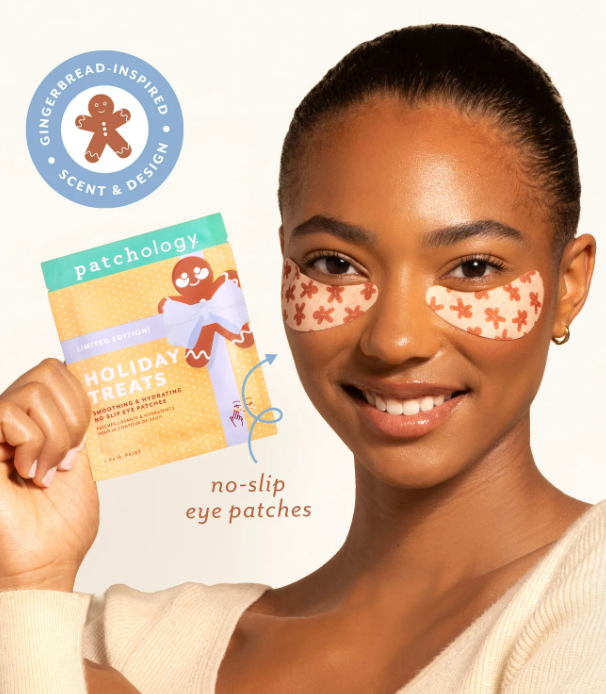 Includes 5x pairs of Smoothing & Hydrating Gingerbread-Inspired No-Slip Eye Patches.