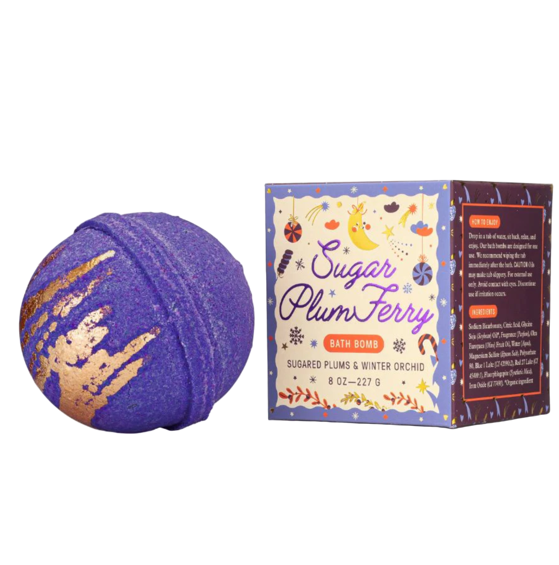 Our bath bombs come individually boxed, featuring gold foil accents, embossed elements, and original artwork by Lulu Dubreuil for a festive Christmas or holiday gift and stocking stuffers!