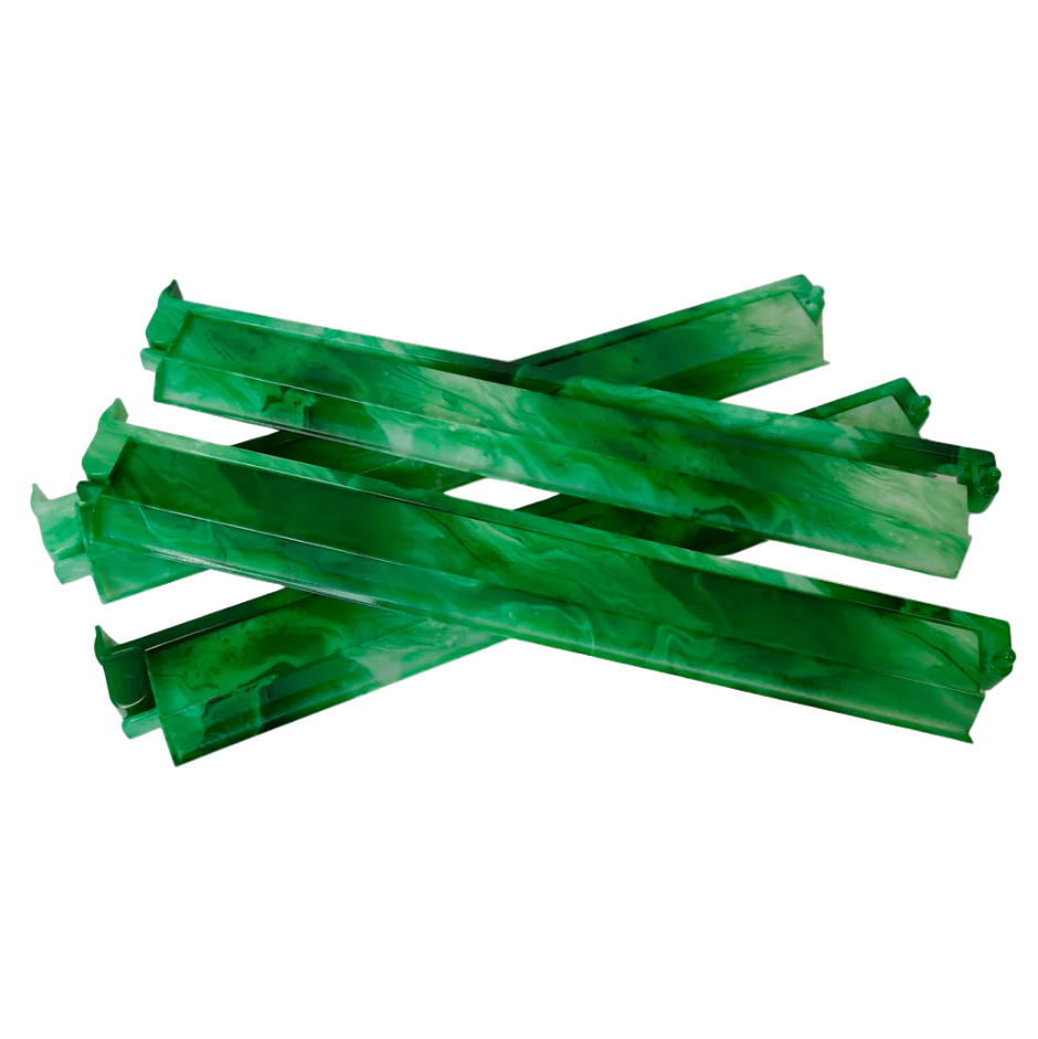 Each set includes four agate green acrylic racks with attached pushers, expertly designed for smooth handling and an elevated presentation. With an 18.5-inch stack length, these racks ensure seamless gameplay while making a striking style statement. Pair them with our Let’s Rack and Roll bag for chic, protective storage between games.