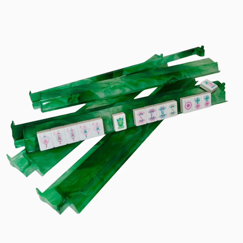 Agate Green Mahjong Rack & Pusher Set — a fresh, vibrant take on timeless style. Made from durable opaque acrylic, this set delivers both beauty and function, bringing serene sophistication and an effortless pop of color to your table.