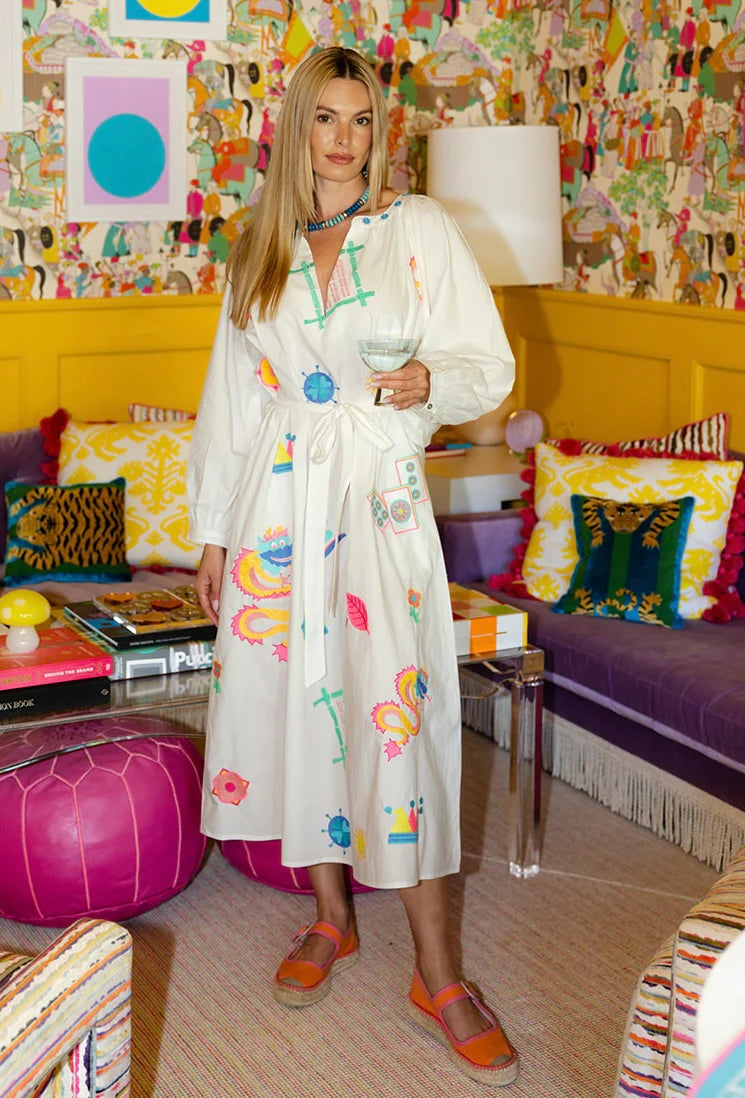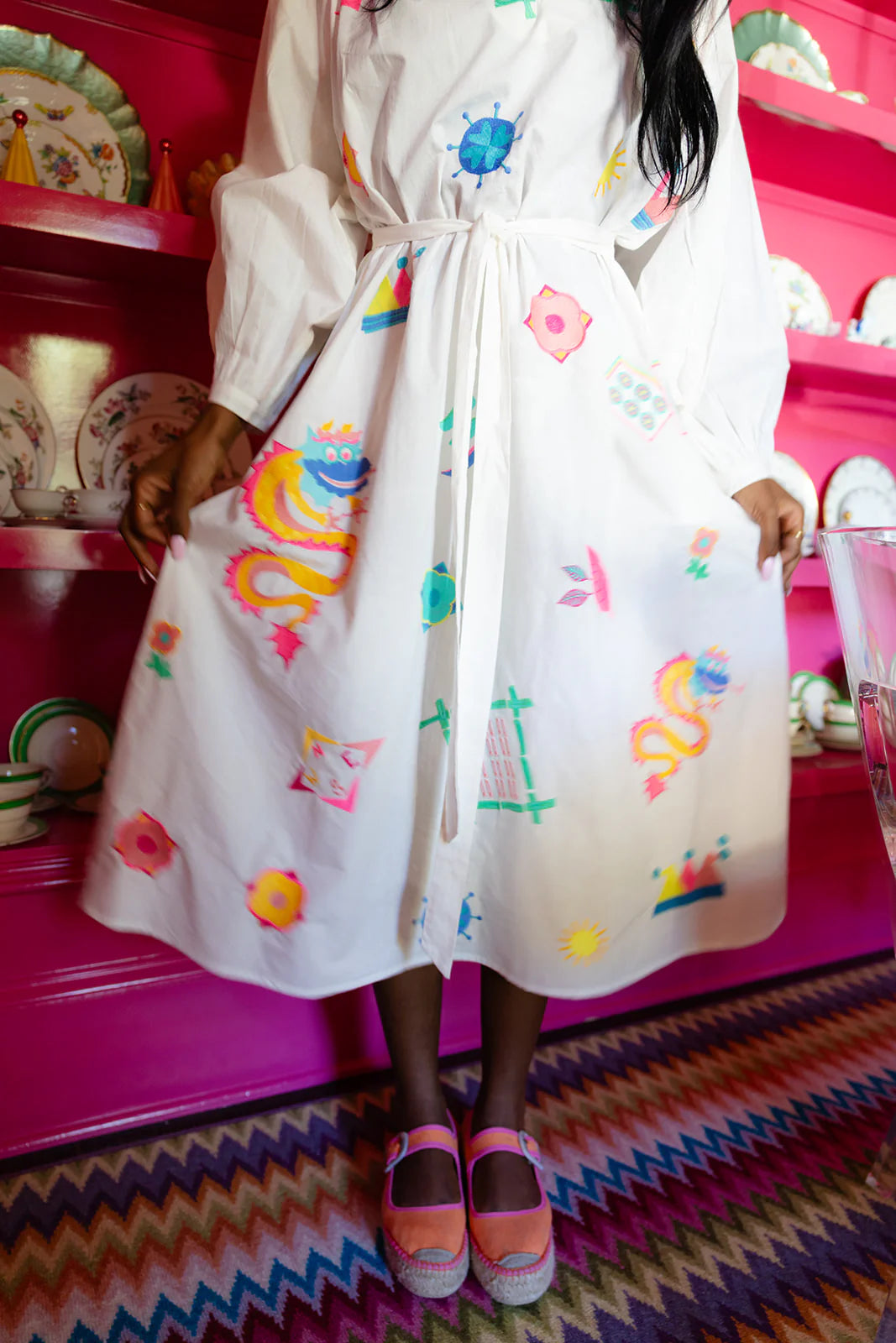 Tela x Colordrunk Hand Embroidered Mahjong Midi Dress - PRE SALE
