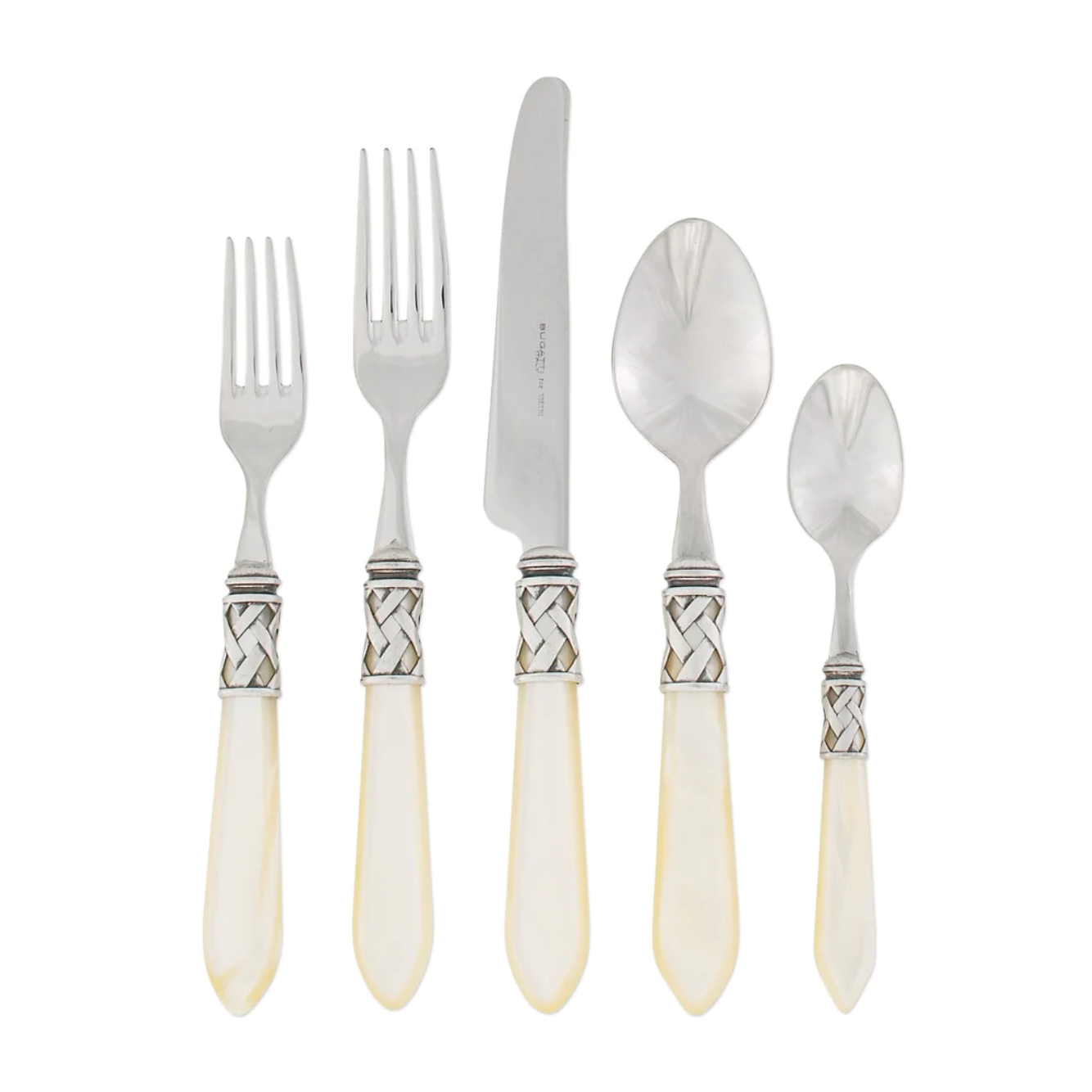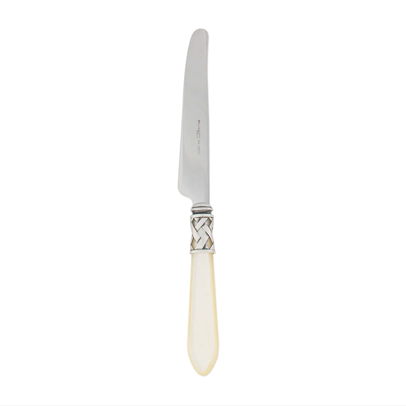The Aladdin Antique Place Knife features elegant pearlized handles with the strength of high-grade acrylic and 18/10 stainless steel. This piece is also available in our brilliant finish.