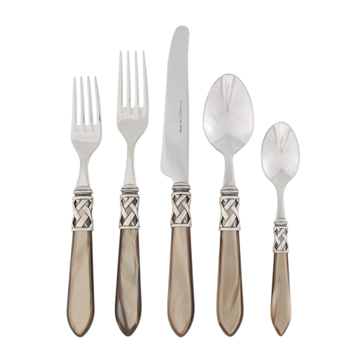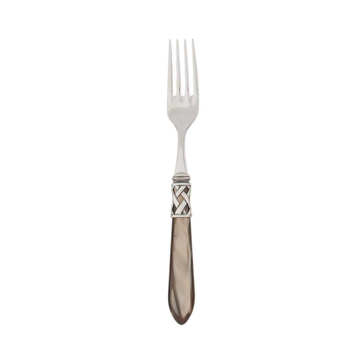 The Aladdin Antique Place Fork features elegant pearlized handles with the strength of high-grade acrylic and 18/10 stainless steel. This piece is also available in our brilliant finish.