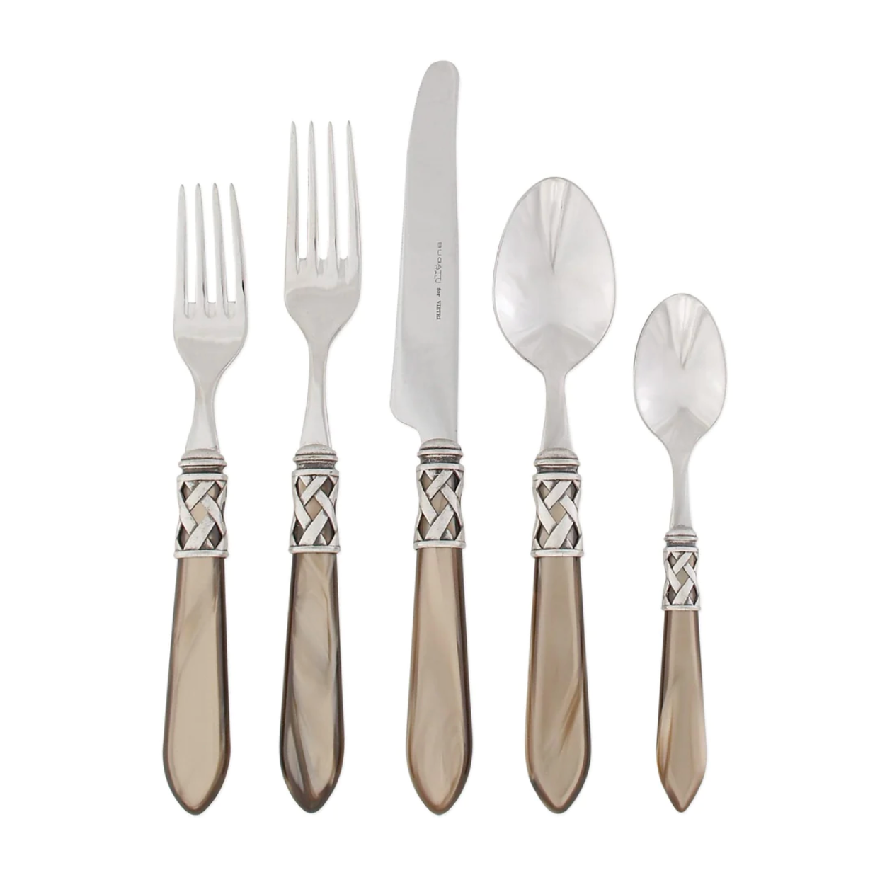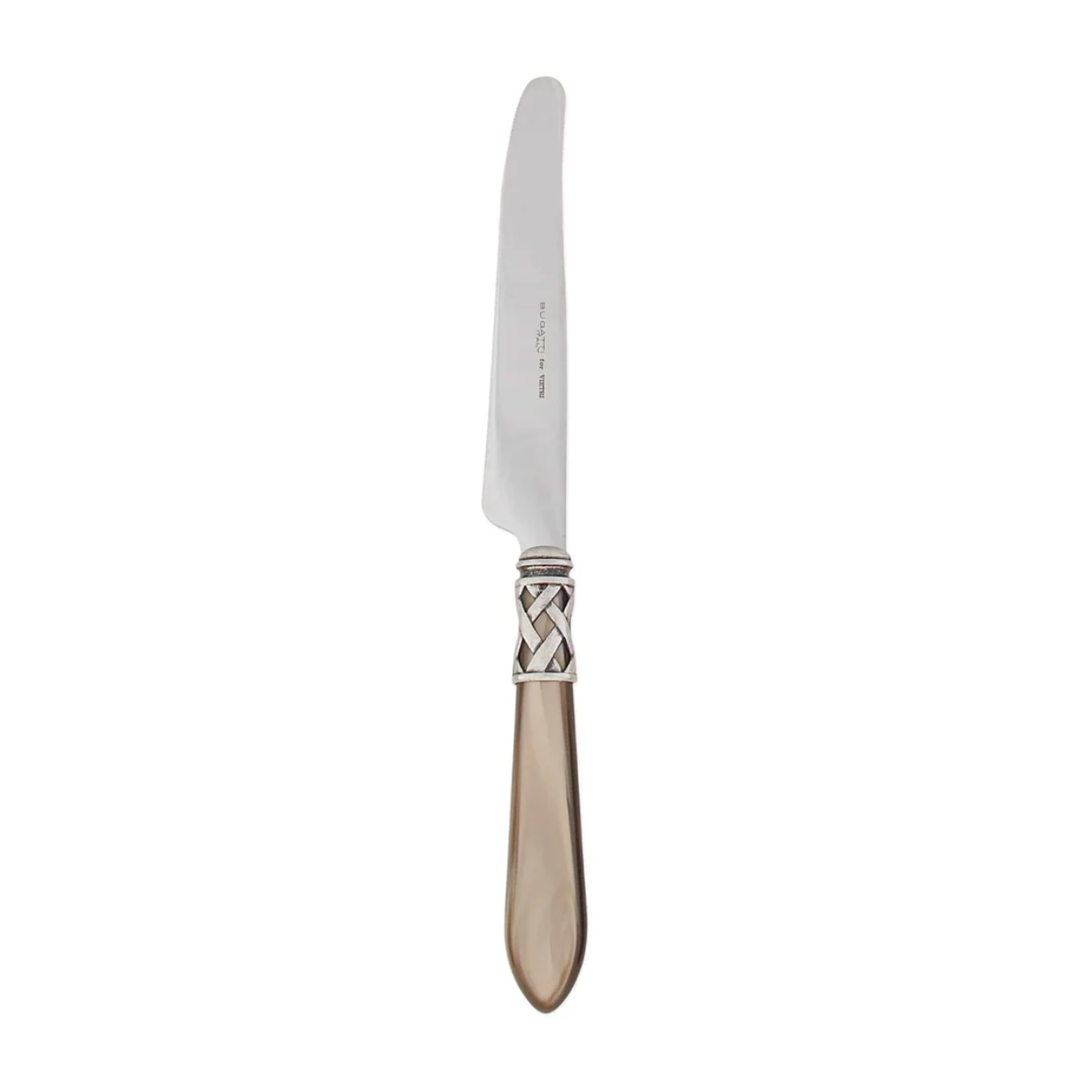 The Aladdin Antique Place Knife features elegant pearlized handles with the strength of high-grade acrylic and 18/10 stainless steel. This piece is also available in our brilliant finish.