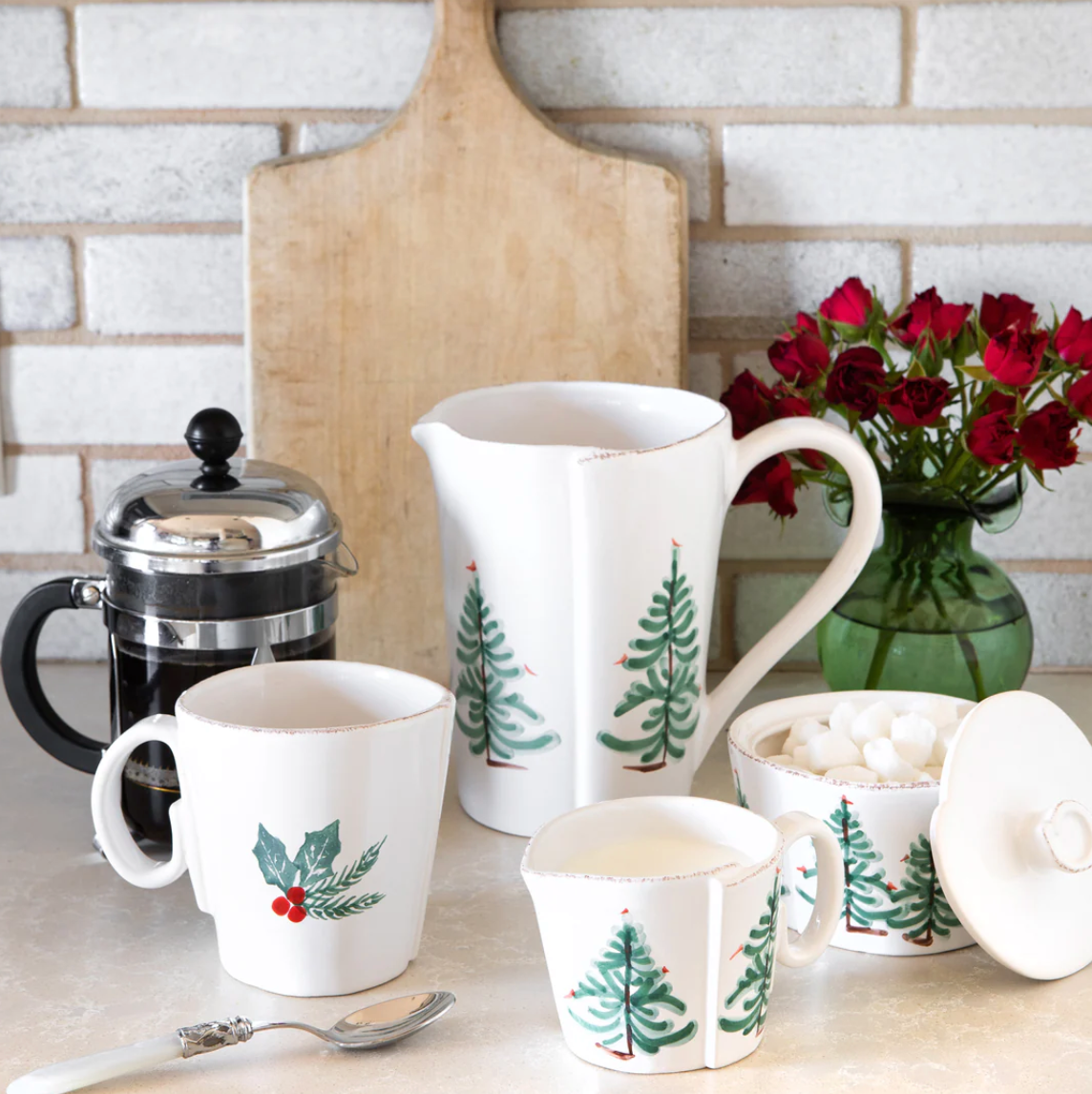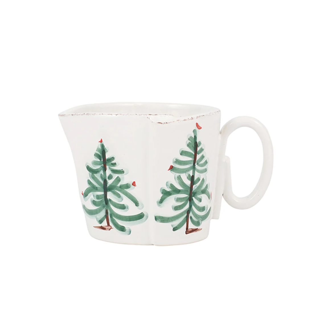Full of artistic detail yet also refreshingly simple, the Lastra Holiday Creamer features handpainted red birds perched on fir trees. According to Italian tradition, red birds mean that someone who loves you is thinking of you, and so this piece is at once beautiful and heartwarming.