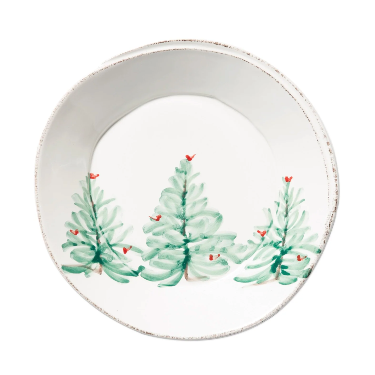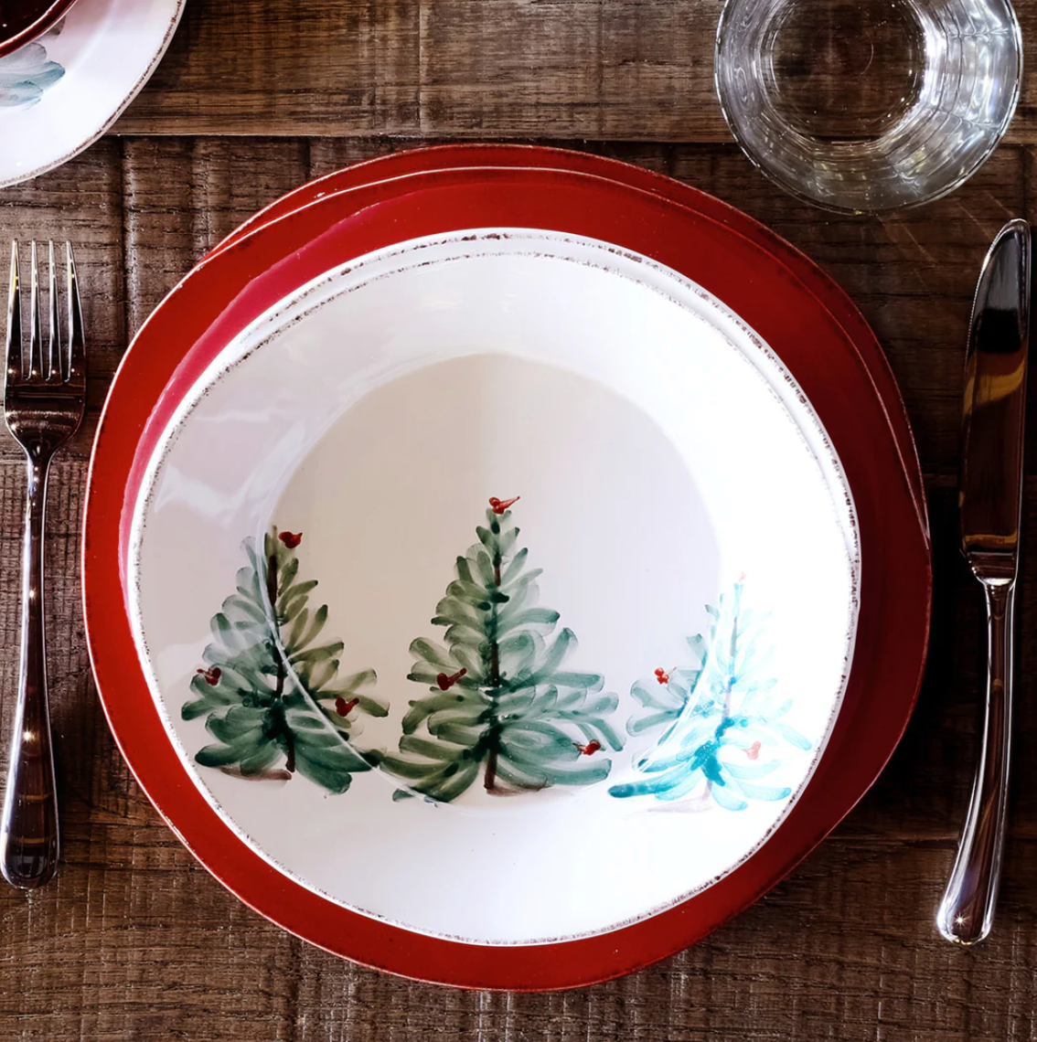 The Lastra Holiday Pasta Bowl adds charm and cheer to any holiday setting on a elegantly sophisticated piece with rustic edges. The product's shape was inspired by the straps used to form cheese in Italy for centuries.
