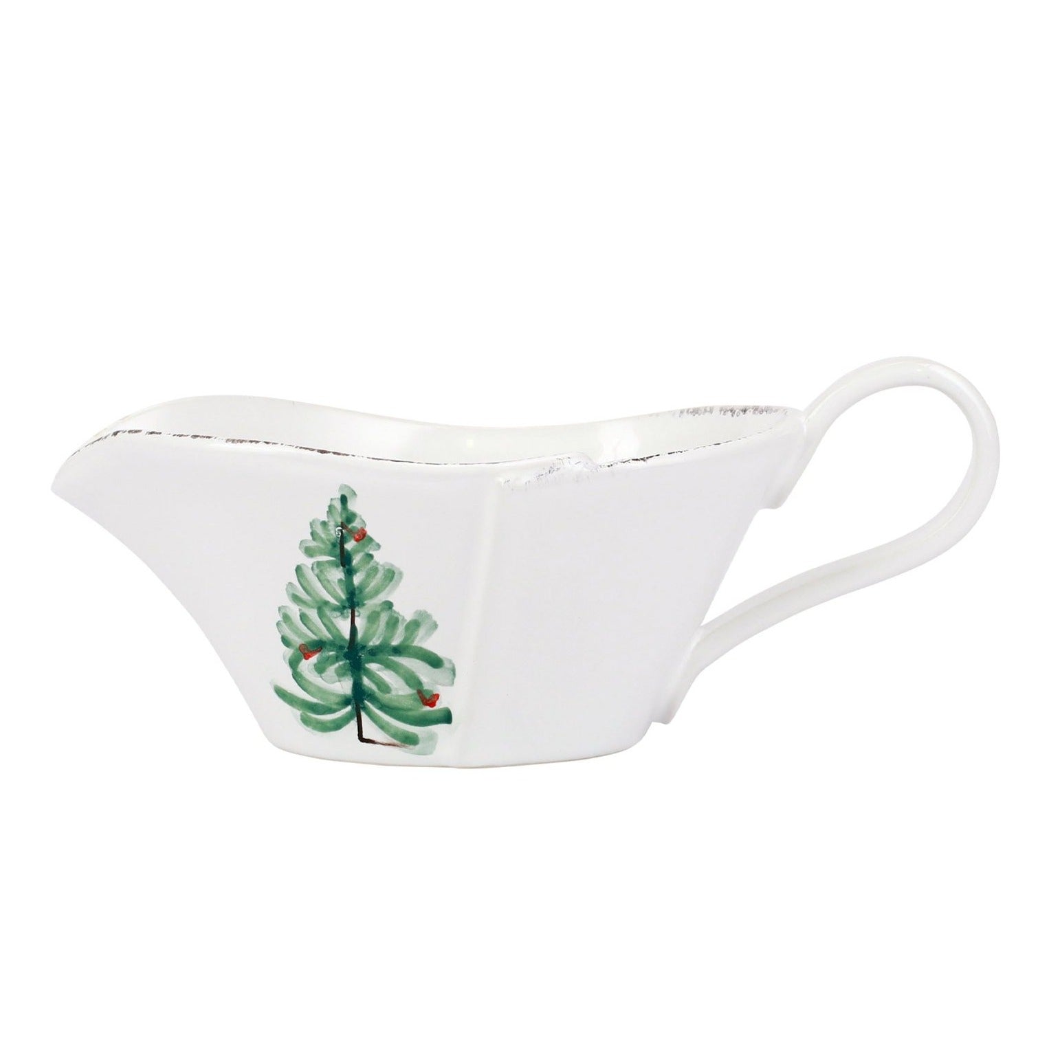 Handpainted on Italian stoneware in Tuscany, our Lastra Holiday Sauce Server reveals a cheerful design on a rustic yet chic shape. Lastra was inspired by the overlapping wooden mold that was used for centuries to form parmesan and other cheeses throughout Italy.