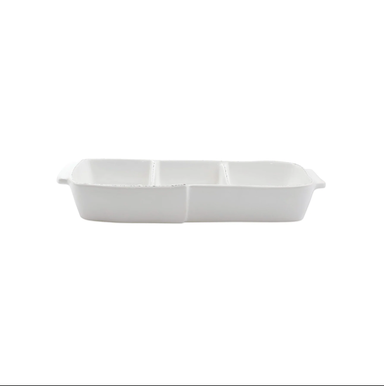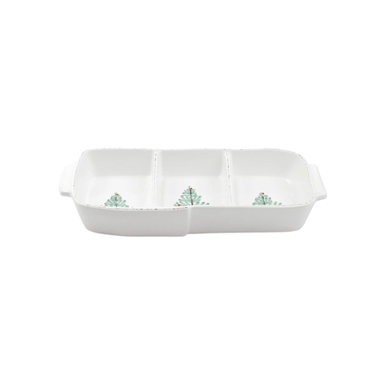 Delight in the holiday magic as handpainted fir trees and bright cardinals drift across the fresh white canvas of the Lastra Holiday Small Three-Part Server. Mix and match with Lastra for a fun and sophisticated holiday table with a twist!