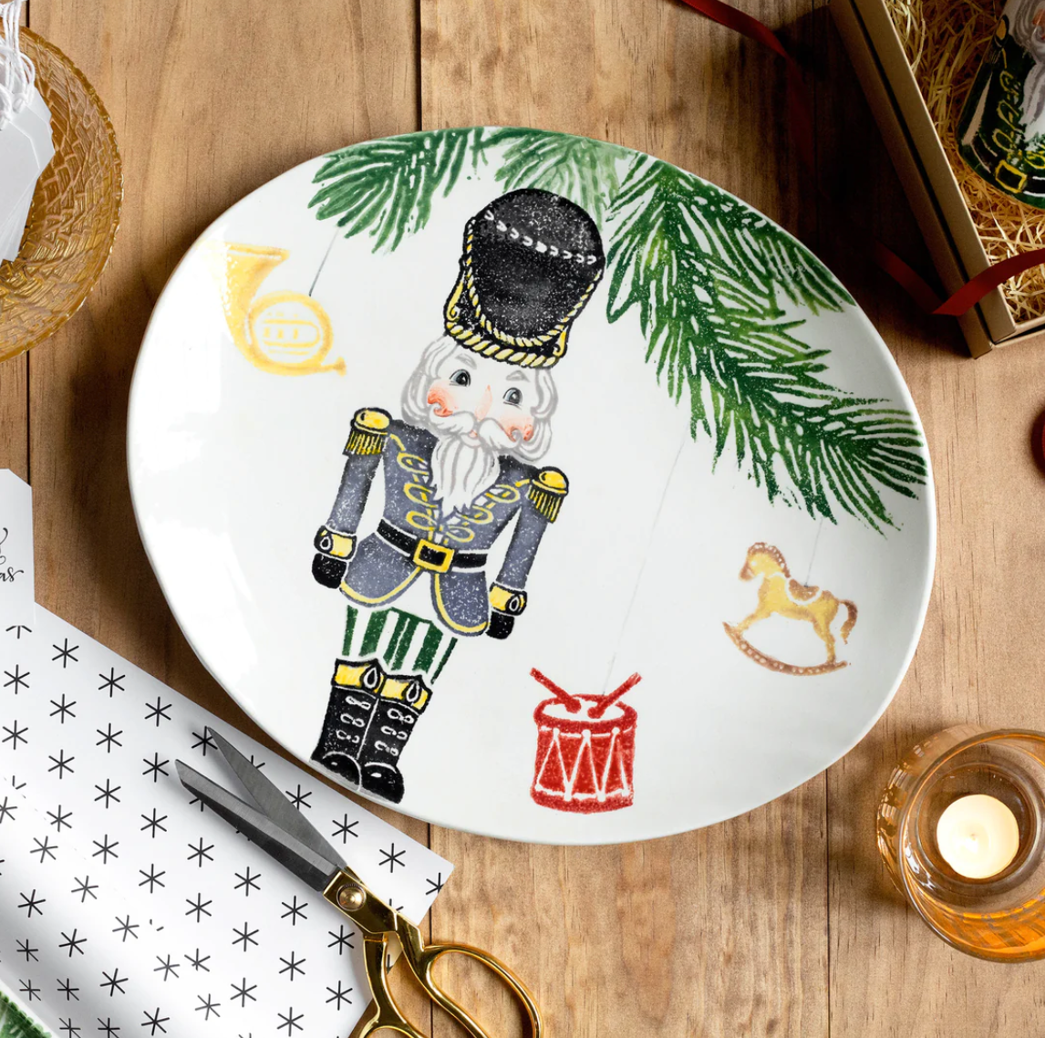 Maestro artisan, Gianluca Fabbro, recreates a Christmas classic with bright colors and a cheerful holiday design on the Nutcrackers Medium Oval Platter, inspiring new family traditions with a collectible to be passed down from generation to generation.