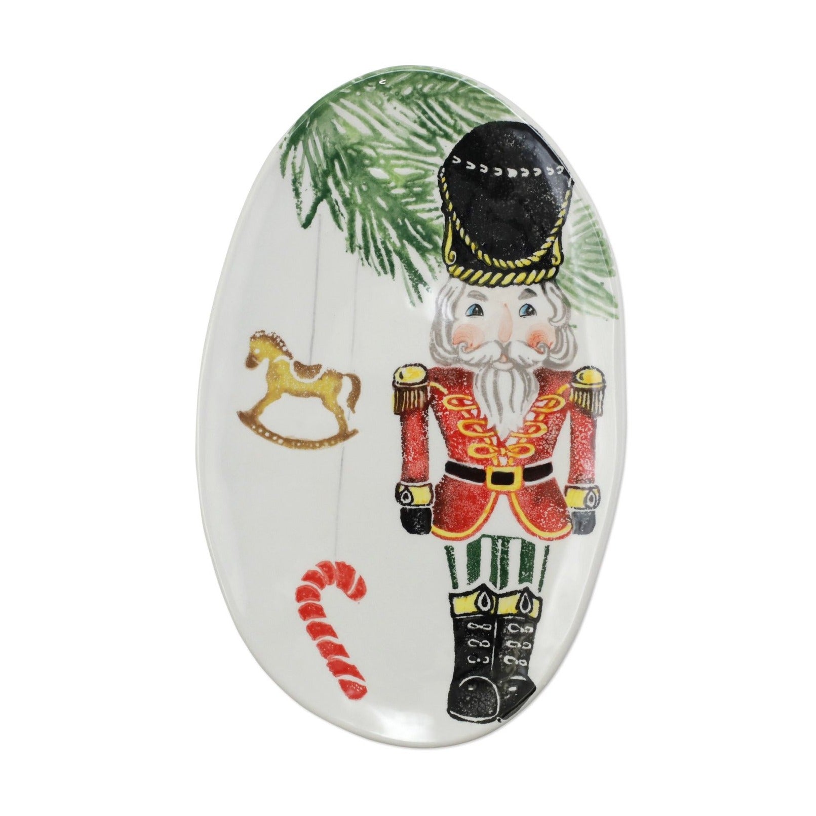Maestro artisan, Gianluca Fabbro, recreates a Christmas classic with bright colors and a cheerful holiday design on the Nutcrackers Small Oval Platter, inspiring new family traditions with a collectible to be passed down from generation to generation.