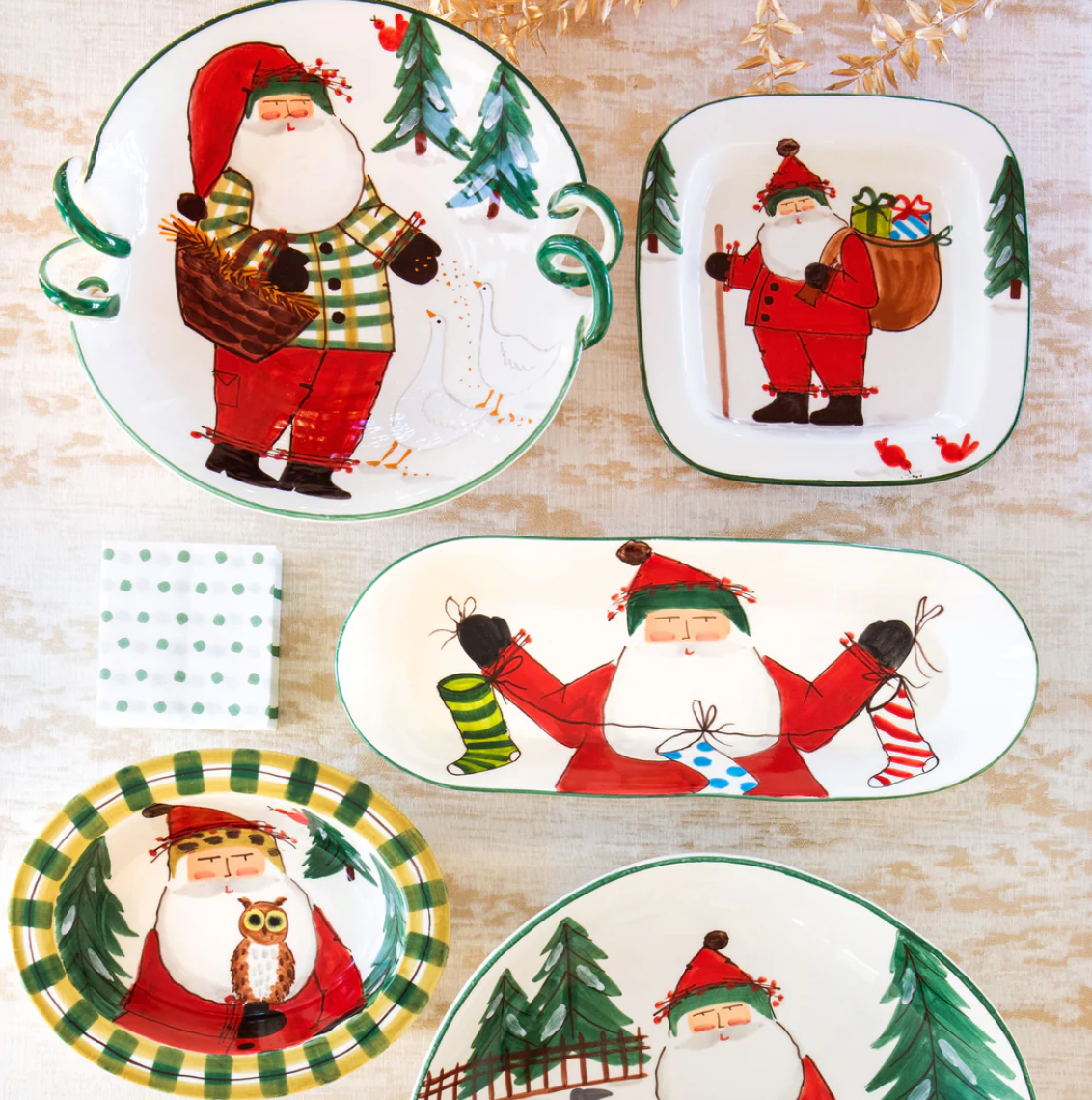 VIETRI’s signature holiday collection is a celebration of nostalgia, family, and holiday spirit. When maestro artisan Alessandro Taddei was a small boy, his mother read him stories about Babbo Natale, Italy’s Santa Claus. Alessandro transforms those memories into the whimsical and joyful designs on the Old St. Nick Bread Server with Stockings.
