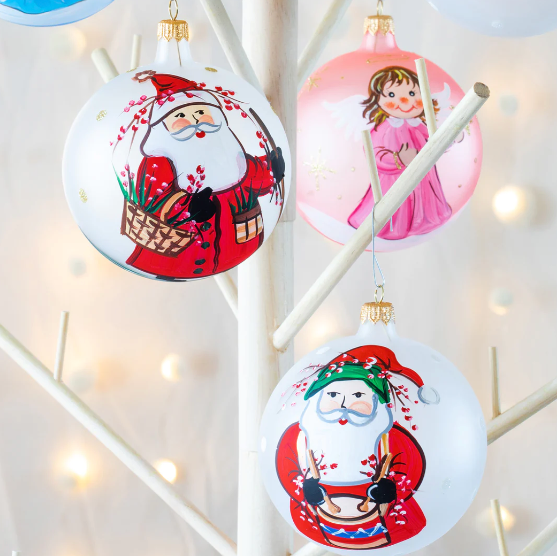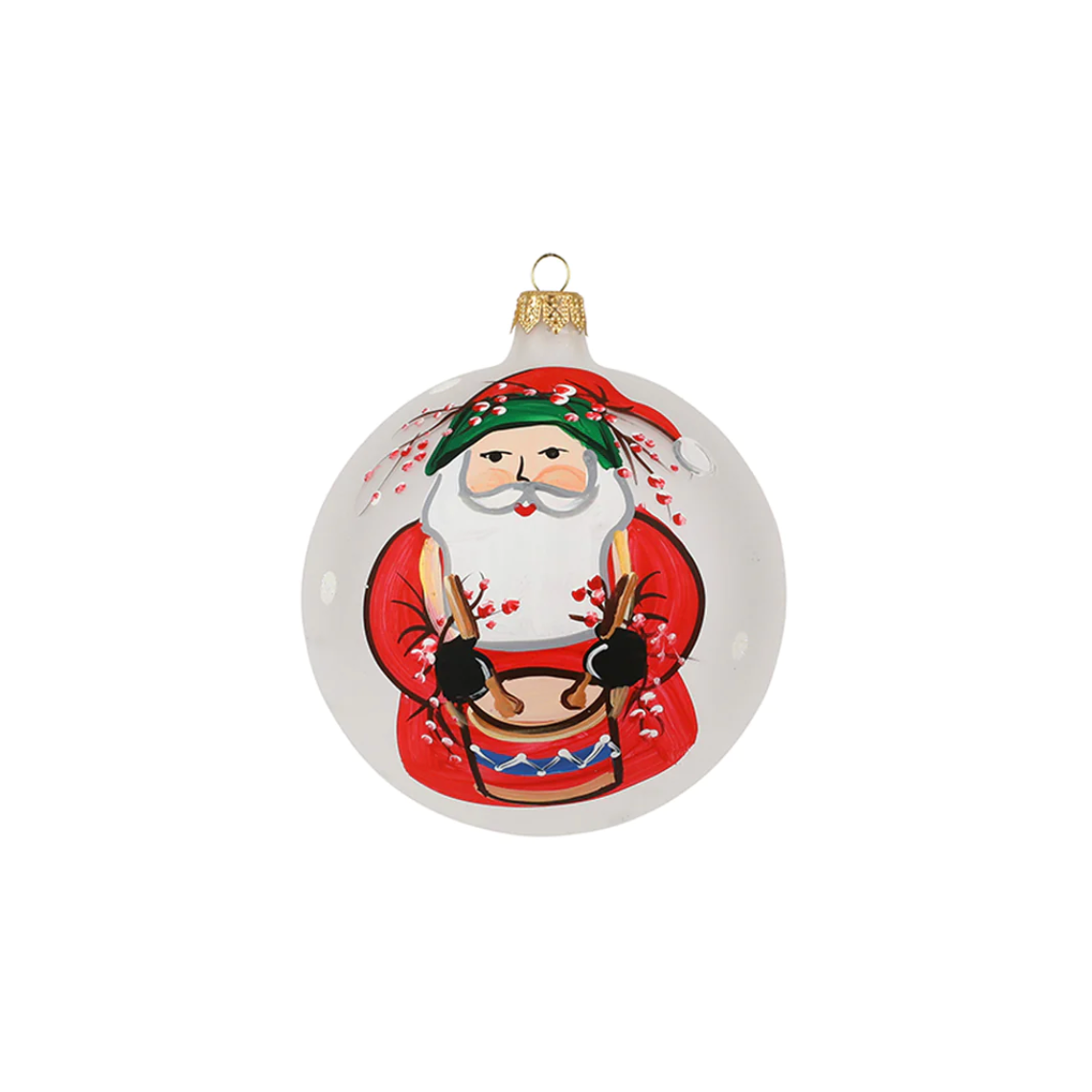 Each Old St. Nick Ornament is inspired by maestro artisan Alessandro Taddei's childhood memories. Alessandro's mother used to read to him about Babbo Natale, Italy's Santa Claus, and he reimagines that jolly man in every handpainted design. On this charming ornament, Babbo Natale makes music on his drum.