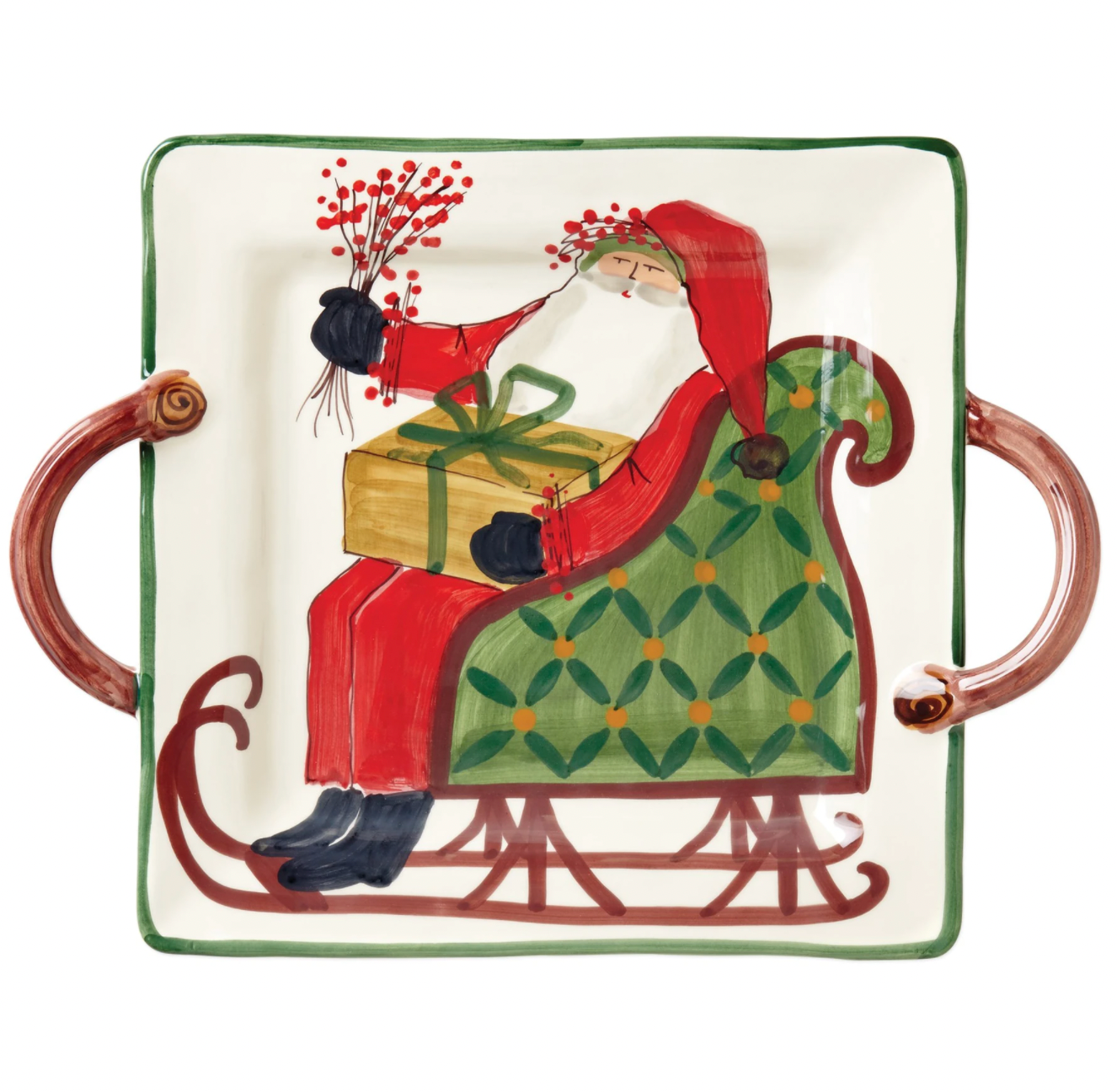 VIETRI Old St. Nick Handled Square Platter