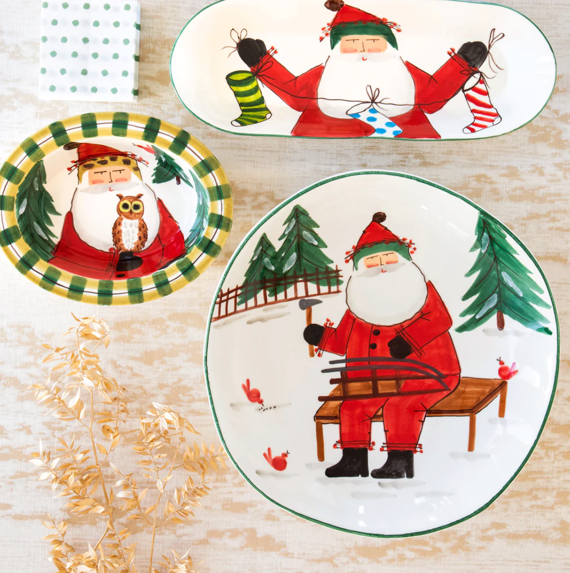 VIETRI’s signature holiday collection is a celebration of nostalgia, family, and holiday spirit. When maestro artisan Alessandro Taddei was a small boy, his mother read him stories about Babbo Natale, Italy’s Santa Claus. Alessandro transforms those memories into the whimsical and joyful designs on the Old St. Nick Large Bowl with Sleigh.
