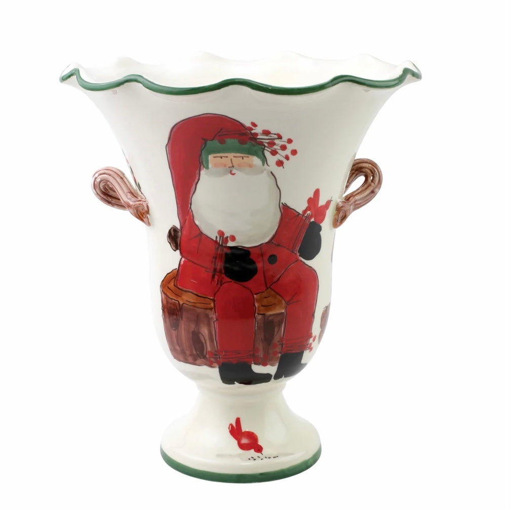 VIETRI Old St. Nick Large Footed Cachepot with Campfire