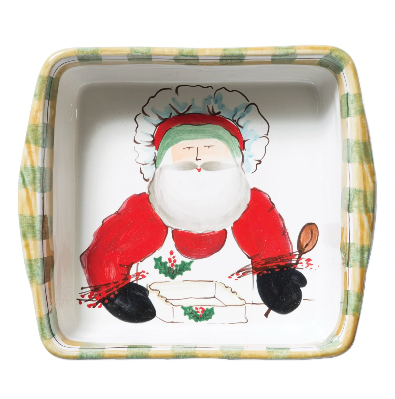 The Old St. Nick Square Baker with Chef features the handpainted designs of maestro artisan Alessandro Taddei. Alessandro relays the stories of Babbo Natale through his whimsical designs, providing us a glimpse into Old St. Nick's daily adventures leading up to preparations for each holiday season.