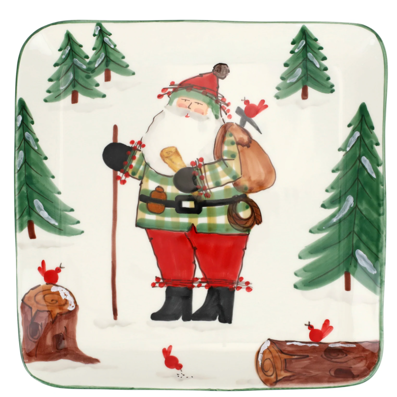 VIETRI’s signature holiday collection is created from maestro artisan Alessandro Taddei’s childhood memories of stories his mother used to read to him about Babbo Natale, Italy’s Santa Claus. Alessandro relays the stories through his whimsical designs on the Old St. Nick Square Platter with Hiker, providing us a glimpse into Old St. Nick’s daily adventures leading up to preparations for each holiday season.